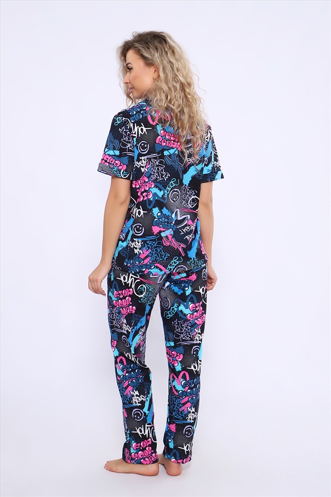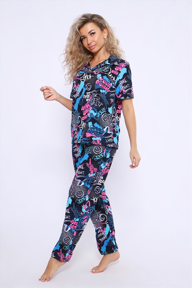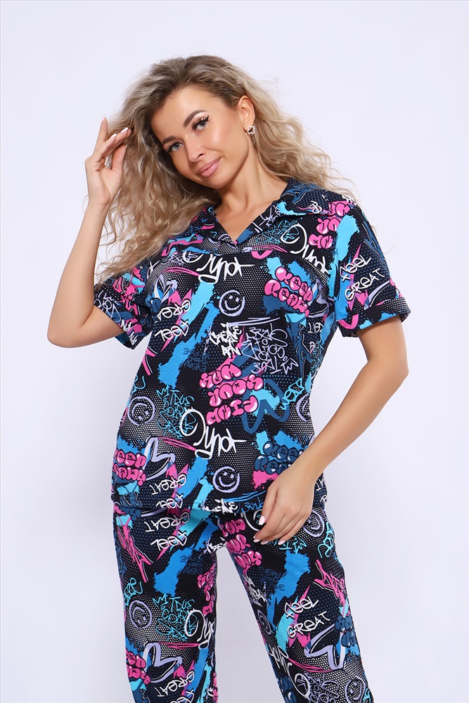 Состав: 100% хлопок Модель: Костюм 13296 Тип товара: костюм с брюками Материал: кулирка | кулирка Бренд: Натали Суслова Карман: боковые Назначение: для дома НДС: 5% Особенности: на резинке Отделка: с карманами Посадка: средняя посадка Рисунок: абстракция | разное Рукав: короткий рукав Сезонность: лето | осень | весна | зима Силуэт: прямой | свободный Стиль: домашний Воротник: отложной воротник | рубашечный воротник Застежка: без застежки Костюм состоит из футболки и брюк. Футболка с рубашечным воротником и короткими рукавами с манжетами. Брюки с карманами. Таблица размеров и весафутболка