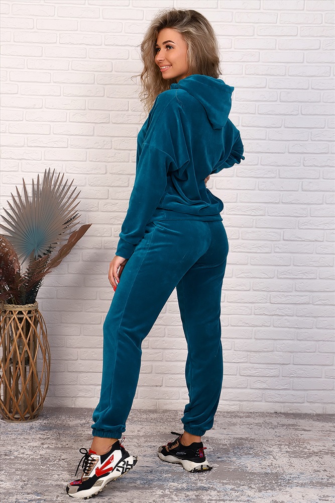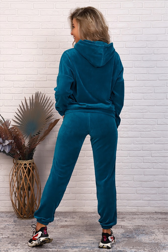 Застежка: без застежки Костюм женский с брюками. Толстовка с двойным капюшоном в стиле оверсайз. Брюки с поясом и резинкой 4 см, в боковых швах присутствуют карманы. По низу пришита резинка 2,5 см. Данная модель выполнена из трикотажного полотна велюра с рапортом 4/1. Отлично подходит для прогулок и повседневной носки, а сочный цвет поднимет настроение в осеннее время