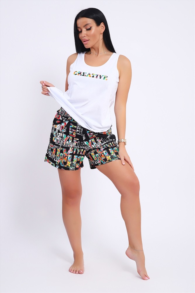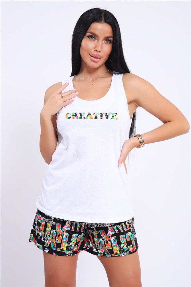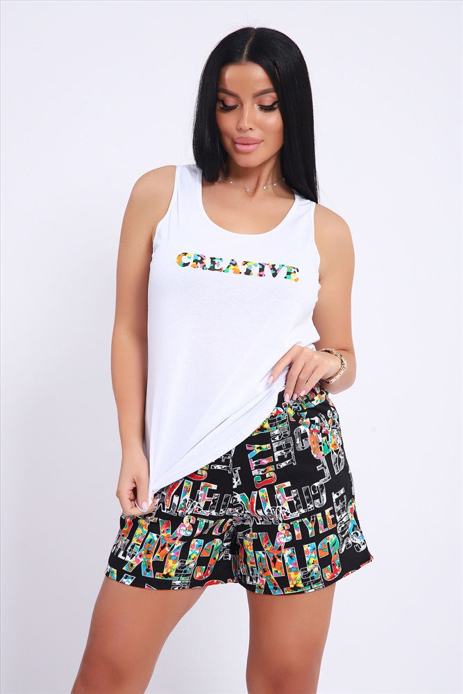 Состав: 100% хлопок Модель: Костюм 15481 Тип товара: костюм с шортами Материал: кулирка | кулирка Бренд: Натали Суслова Карман: боковые Назначение: для дома НДС: Без НДС Особенности: на резинке Отделка: с карманами | с печатью Посадка: высокая посадка Рисунок: надпись Рукав: без рукава Сезонность: лето | осень | весна | зима Силуэт: полуприлегающий Скидка: любая | от 10% и больше | от 30% и больше Стиль: домашний | молодежный Воротник: без воротника Застежка: без застежки Костюм с шортами, отличный вариант для проведения домашнего досуга. Модель состоит из трикотажного полотна кулирки (100% хлопок). Изделие очень приятное к телу, а благодаря крою совсем не сковывает движения. Таблица размеров и весаМайка