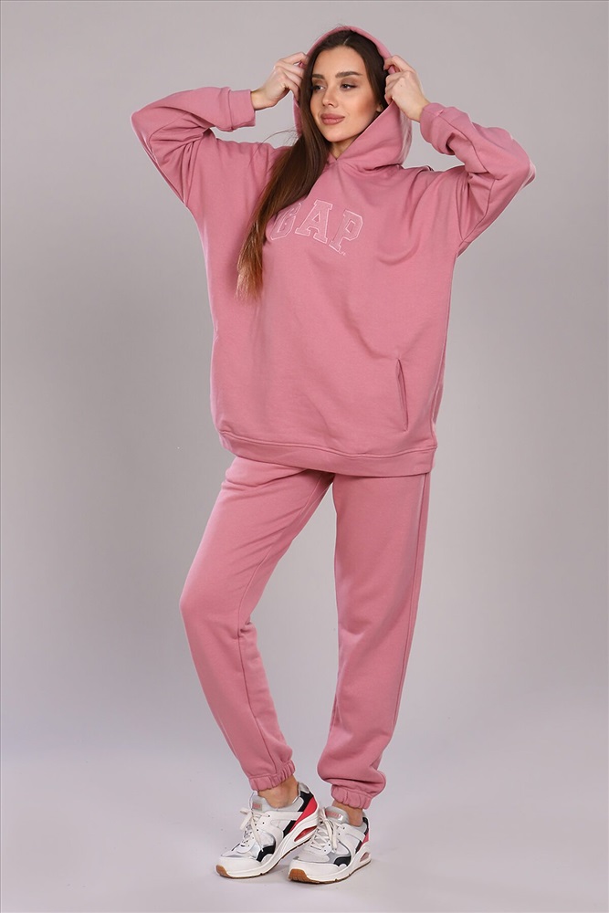 Страна производства: Россия Представленная модель идеально подойдет для любителей оверсайз стиля. Костюм состоит из толстовки и брюк. Толстовка с капюшоном, с двумя прорезными карманами по бокам, на груди текстовая вышивка. Брюки имеют два прорезных кармана без молнии и вышивку, идентичную вышивке на толстовке, низ брюк на резинке. Модель идеально скроет недостатки фигуры. Яркий образ данного костюма не оставит вас незамеченными.