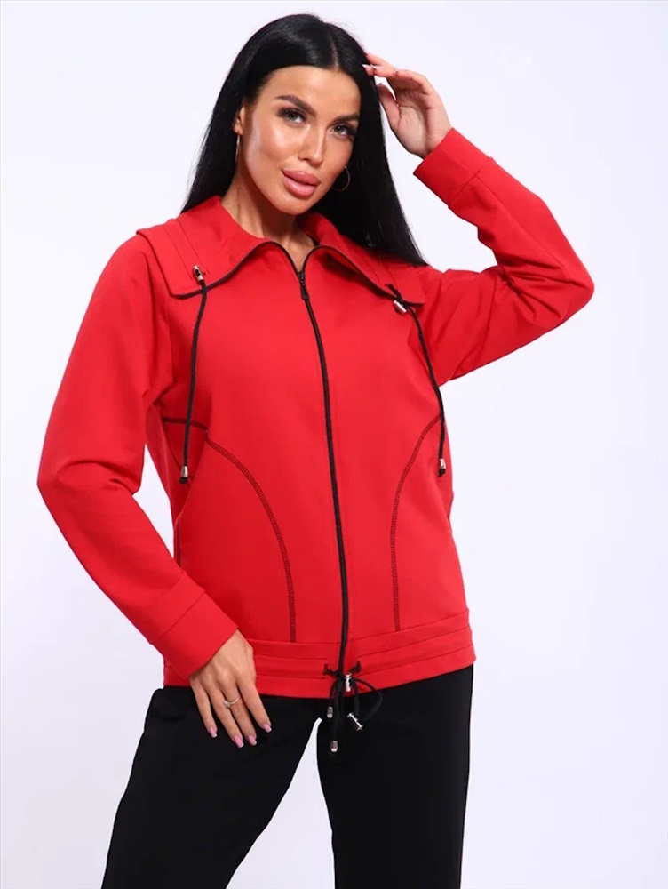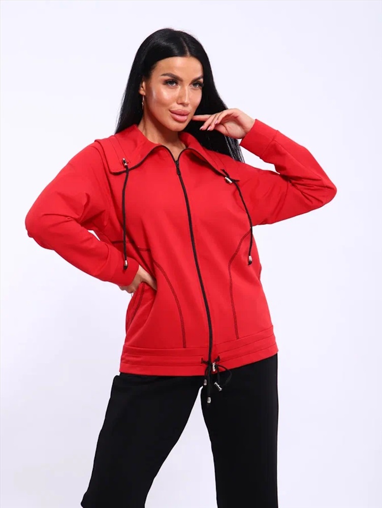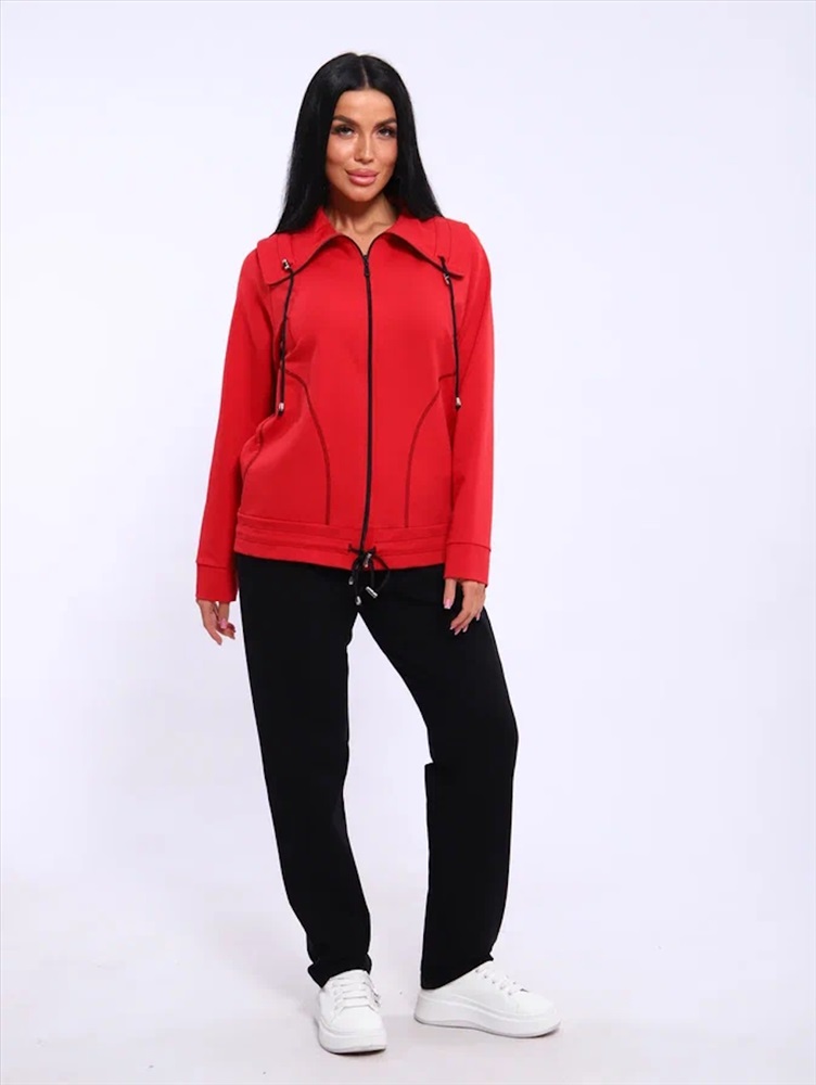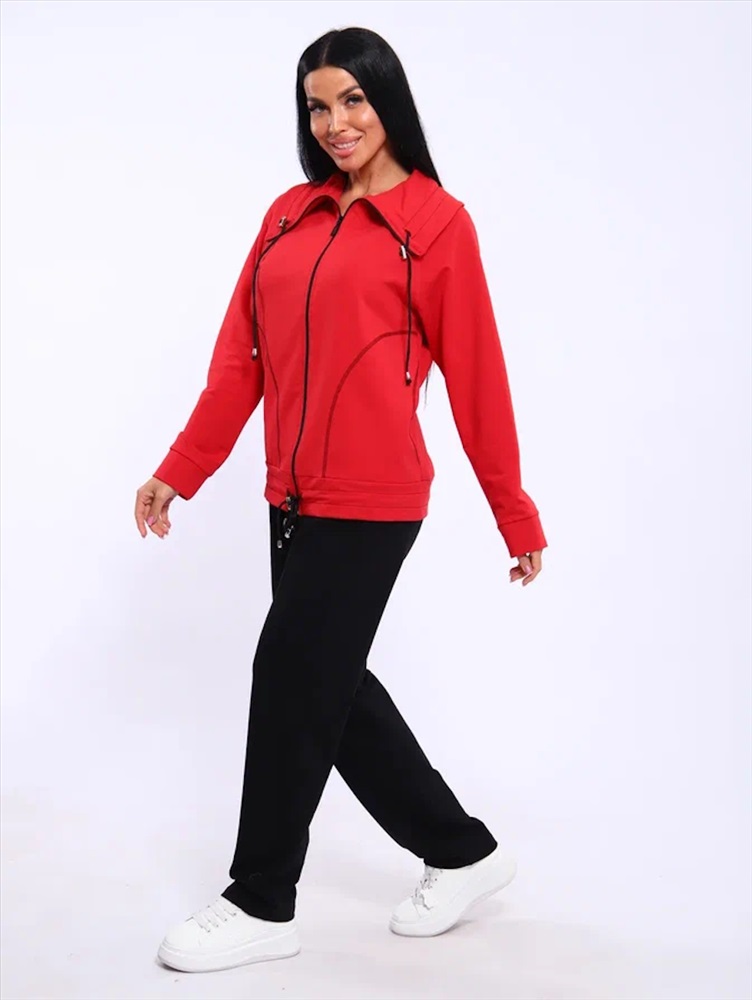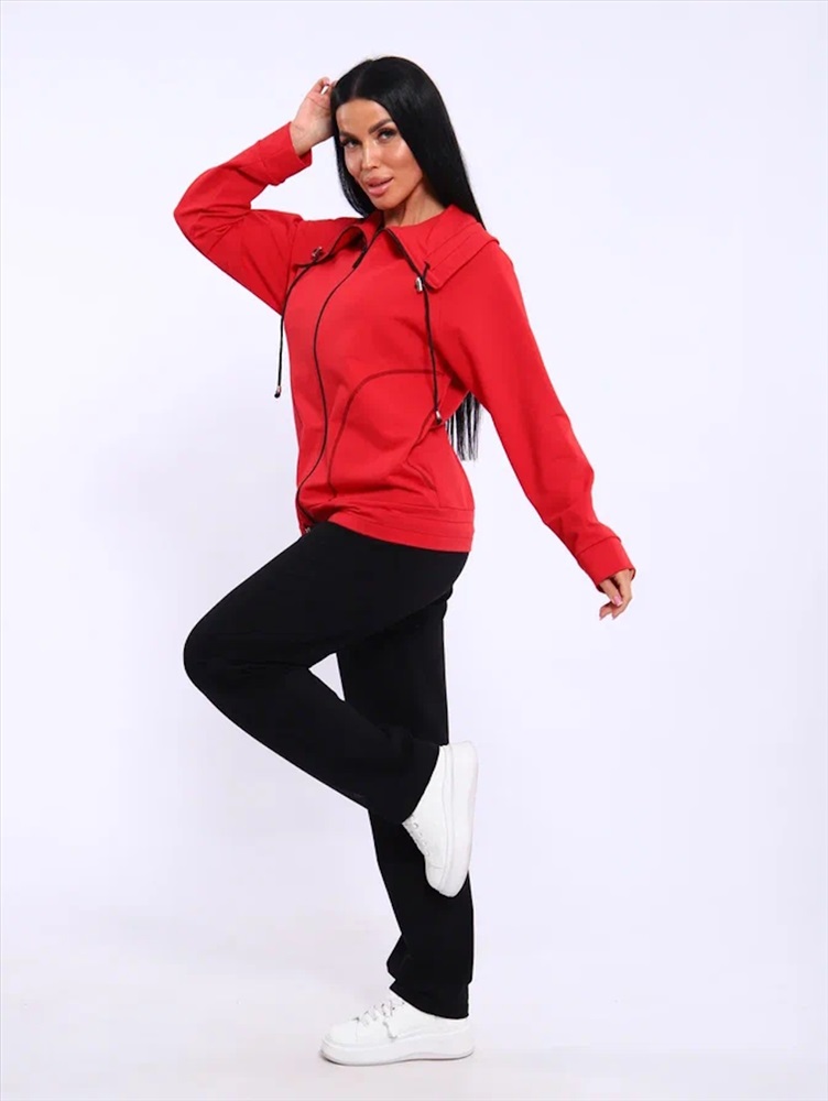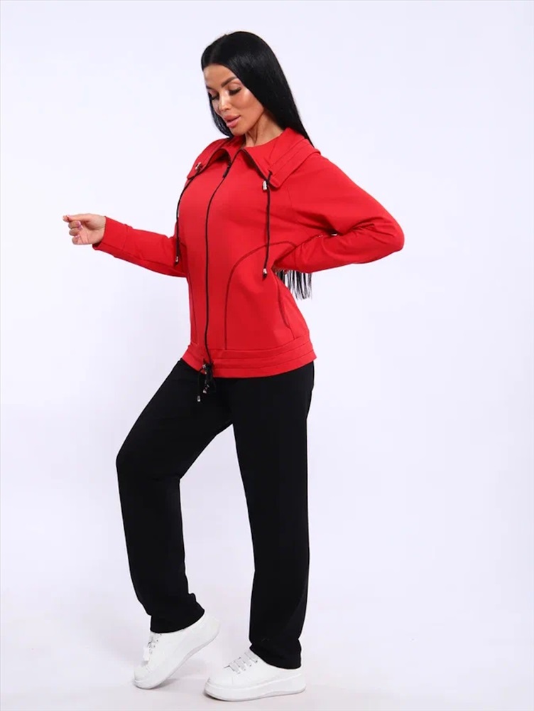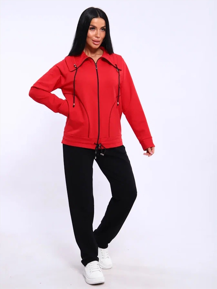 Застежка: молния Спортивный женский костюм из эластичного футера. Брюки классического кроя без карманов на притачном поясе. Декоративный элемент в виде фиксаторов по дизайну не подбирается, может отличаться от представленного на фото.
