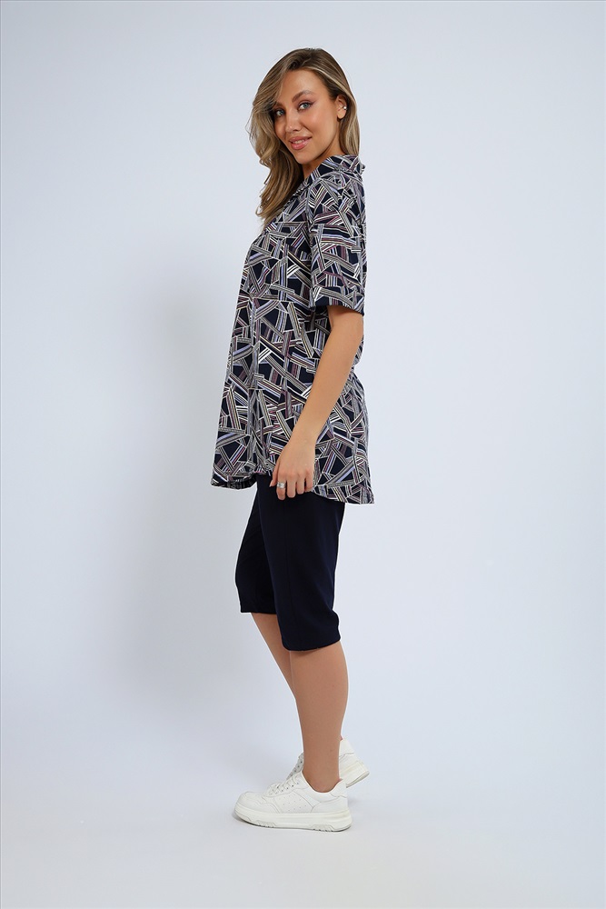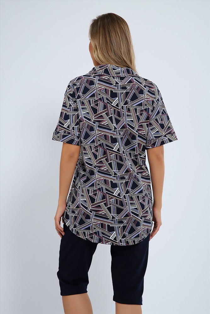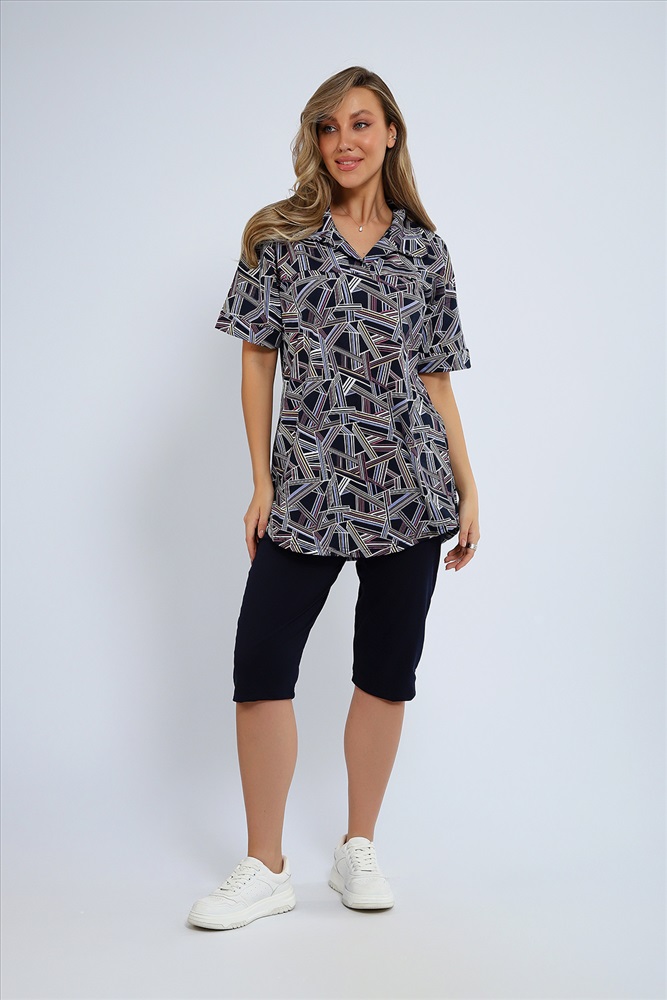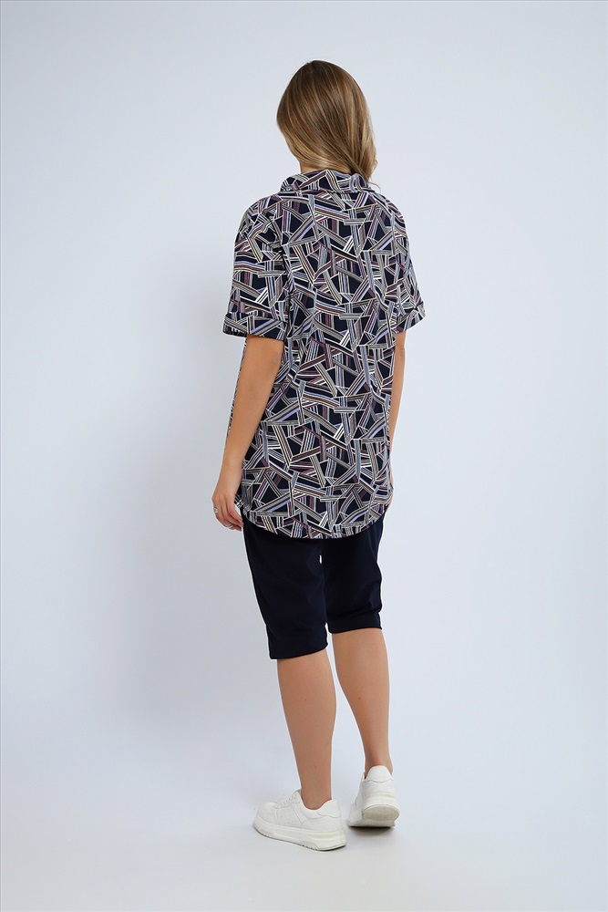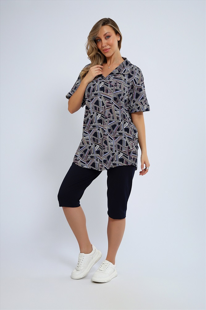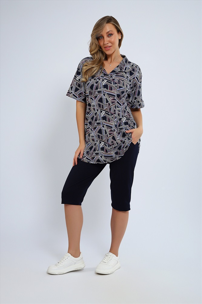Застежка: без застежки Костюм состоит из туники и бридж. Туника с рубашечным воротником, полукруглым низом и короткими рукавами. Бриджи с карманами.