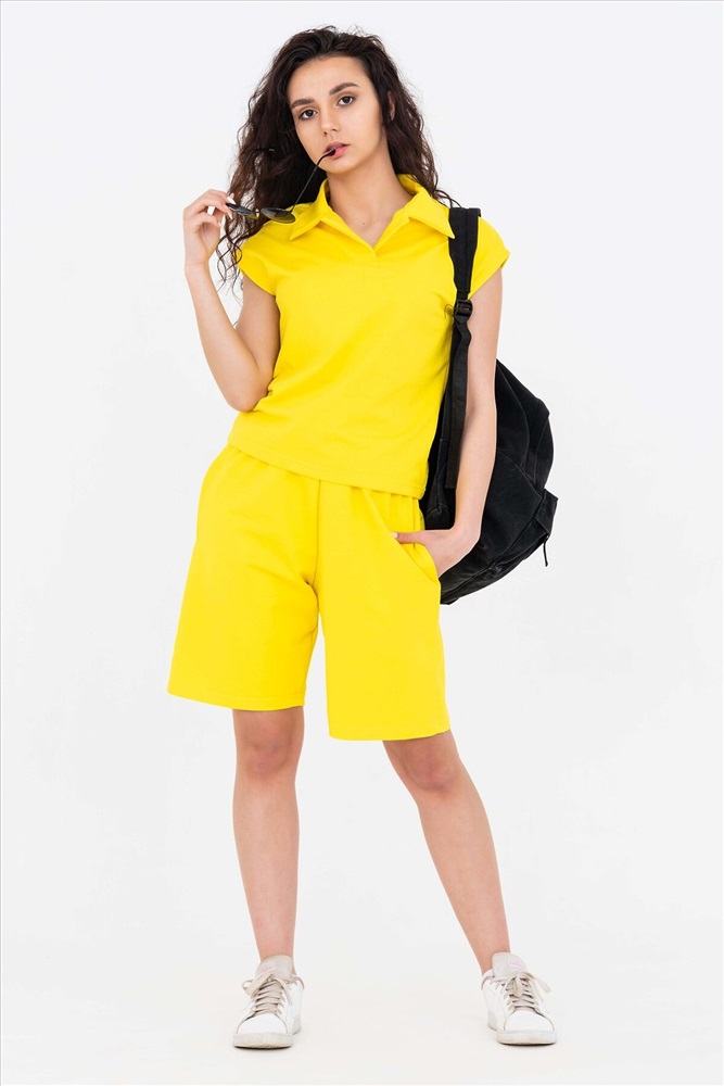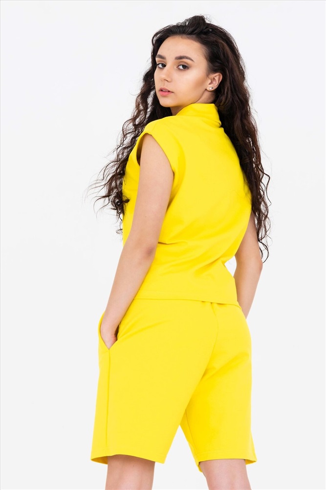 ID товара: 782753 Состав: Хлопок 70%, Полиэстер 24%, Лайкра 6% Сезон: Весна/Лето Длина: Средняя Фасон: Прямой Рукав: Короткие Вид застежки: Без застежки Крой брючин: Прямой Тип карманов: Прорезные Основная ткань: Хлопок | Кулирка Стиль: Повседневный Страна бренда: Россия Страна производства: Россия Летний костюм - жилет и шорты. Жилет с воротником "поло" с цельнокроенными подбортами и отстрочкой до линии плеча. Лёгкий лаконичный полуприлегающий жилет со спущенной линией плеча мягко драпируется на линии талии. Шорты с высокой посадкой, пояс прошит на поясной машине. В боковых швах внутренние карманы. Этот стильный костюм подходит для путешествий, прогулок, повседневного использования. Комментарии к товару