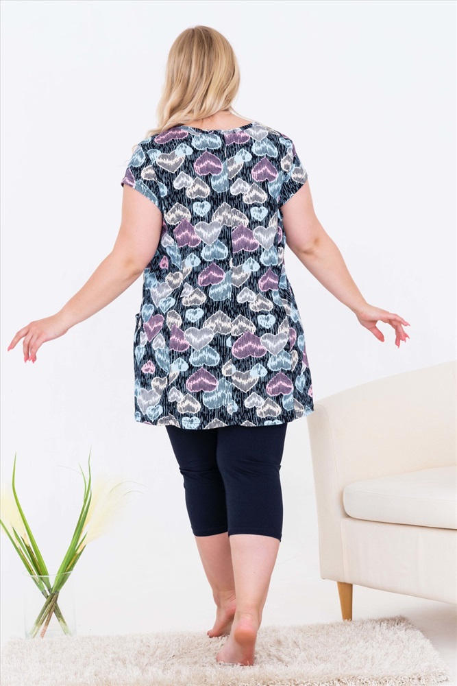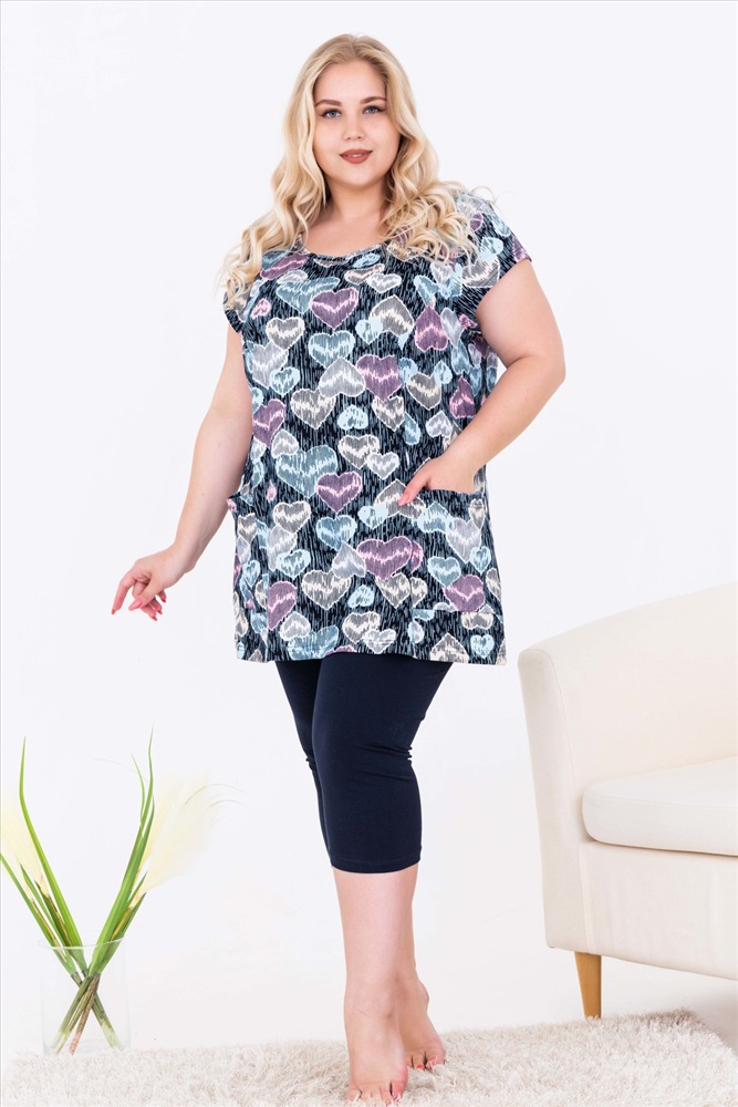 Состав: верх- хлопок 100%, низ- хлопок 95%, лайкра 5% Модель: Костюм 21544 Тип товара: костюм с бриджами Материал: кулирка | кулирка с лайкрой | кулирка | кулирка с лайкрой Бренд: Натали Суслова Карман: накладные Назначение: для дачи | для дома НДС: 5% Особенности: на резинке Отделка: с карманами Посадка: высокая посадка Рисунок: сердечки Рукав: короткий рукав Сезонность: лето | осень | весна | зима Силуэт: полуприлегающий Стиль: домашний Воротник: без воротника Застежка: без застежки Костюм незаменим для дачи, дома и прогулок. Очень удобные бриджи из высококачественной ткани из России. Наличие 5% лайкры позволяет бриджам не растягиваться на коленях во время носки, многократно увеличивает долговечность изделия. А содержание 95% хлопка делает бриджи очень комфортными и приятными к телу. В измерениях бриджей указаны стандартные размеры фигуры. До этих значений бриджи растягиваются без проблем. Туника ниже линии бёдер, с двумя карманами. Благодаря наличию рельефов на полочке и спинке туника имеет хорошую посадку на фигуре. Лёгкая приталенность стройнит. Таблица размеров и весатуника