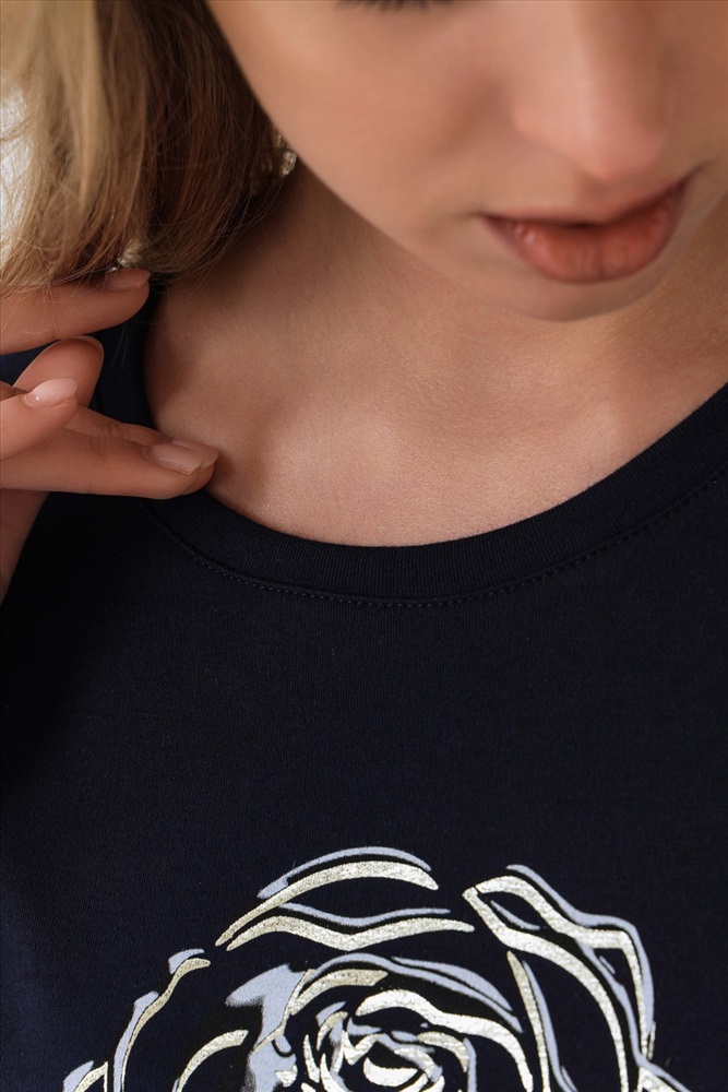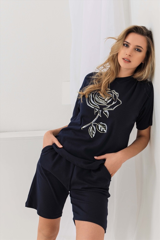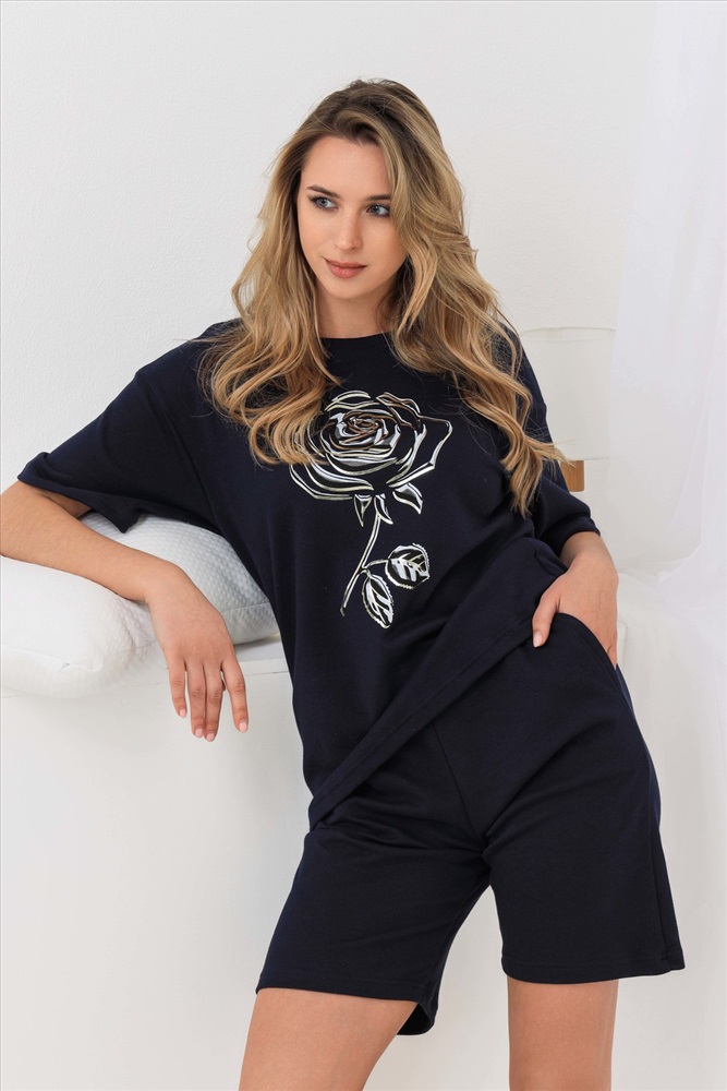 Застежка: без застежки Костюм из качественной ткани. Интерлок пенье - это полотно, при производстве которого используют самые лучшие длинные нити. Материал идеально гладкий, тонкий, на ощупь немного шелковистый. Практически не мнётся, долго сохраняет свою форму. Хорошо удерживает тепло. Обеспечивает свободную циркуляцию воздуха. Футболка свободного кроя, пояс выполнен на поясной машине, горловина обработана киперной лентой. На этой модели использована специальная техника нанесения фольги, с помощью которой выделены отдельные участки изображения. Эффект 3Д. Качественно. Уютно. Для тебя.