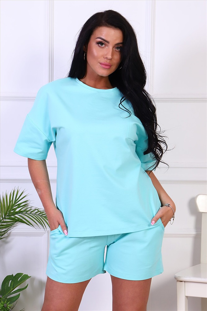 ID товара: 774209 Состав: Хлопок 73%, ПЭ 22%, лайкра 5% Сезон: Весна/Лето Длина: Средняя Фасон: Оверсайз Рукав: Короткий Вид застежки: Без застежки Крой брючин: Прямой Рисунок: Без рисунка Тип карманов: В шве Основная ткань: Хлопок | Футер 2-х нитка Стиль: Спортивный Страна бренда: Россия Страна производства: Россия Костюм женский из футера 2-х нитки. Костюм состоит из шорт и футболки. Шорты свободного покроя с карманами. Футболка с накладным карманом. Рукав спущенный длинной до локтя. Костюм подходит для дома и отдыха. Комментарии к товару