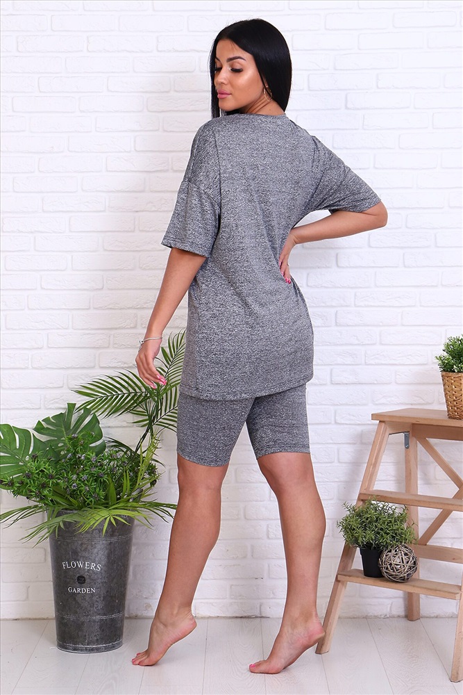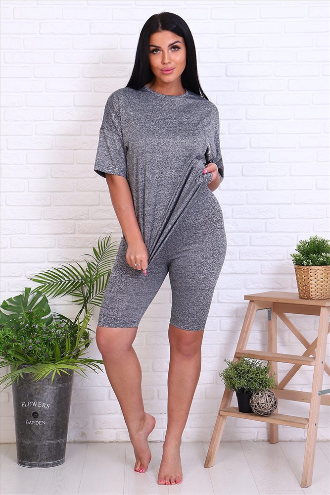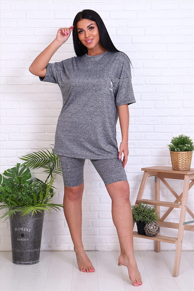 ID товара: 778384 Состав: ПЭ 100% Сезон: Весна/Лето Длина: Удлиненная Фасон: Оверсайз Рукав: До локтя Вид застежки: Без застежки Крой брючин: Облегающий Рисунок: Без рисунка Тип карманов: накладной Декоративные элементы: Печатный принт Основная ткань: Полиэстер | Масло Стиль: Спортивный Страна бренда: Россия Страна производства: Россия Костюм женский из масла. Состоит из велосипедок и футболки оверсайз. На полочке расположен карман с печатью. Рукав втачной. Комментарии к товару