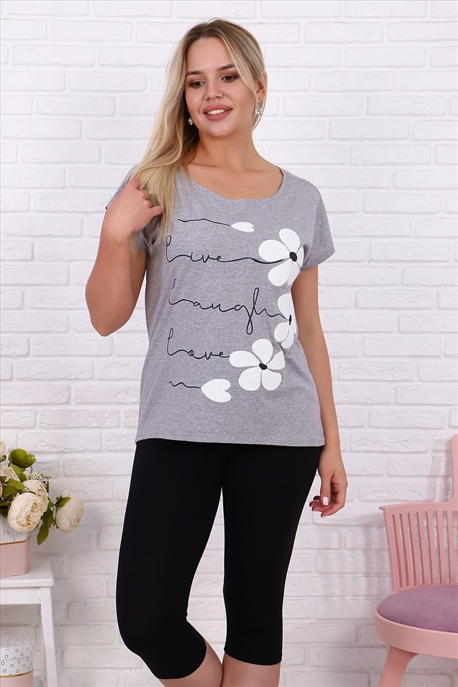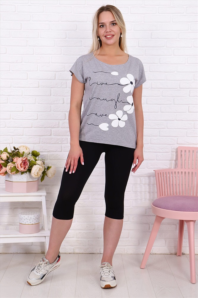 Страна производства: Россия Костюм женский с принтом состоит из футболки и бридж. Модель представлена в трех трендовых оттенках этого сезона. Футболка выполнена из трикотажного полотна высокого качества, полуприлегающего силуэта, горловина в виде лодочки. Бриджи удобные, практичные, облегающего силуэта. Резинка вшита в пояс, длина чуть ниже колена. Ткань бридж мягкая на ощупь, не садится после стирки и не теряет цвет. Костюм непременно станет идеальным предметом вашего гардероба для фитнеса, туризма и любого активного отдыха.