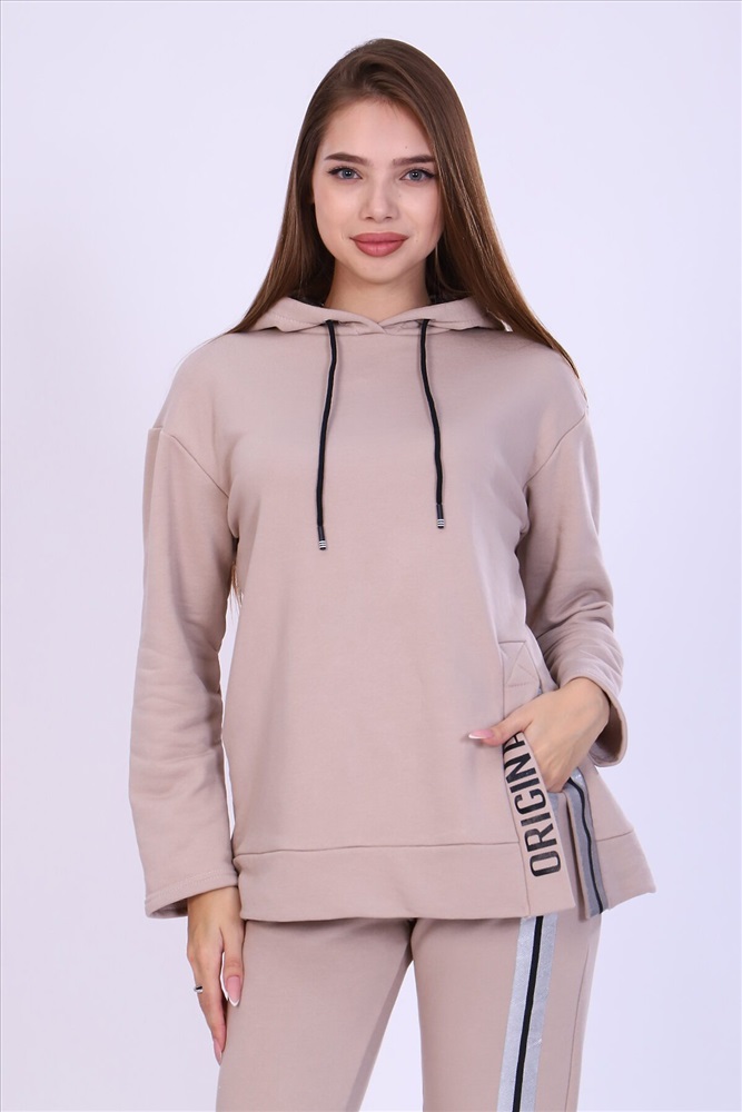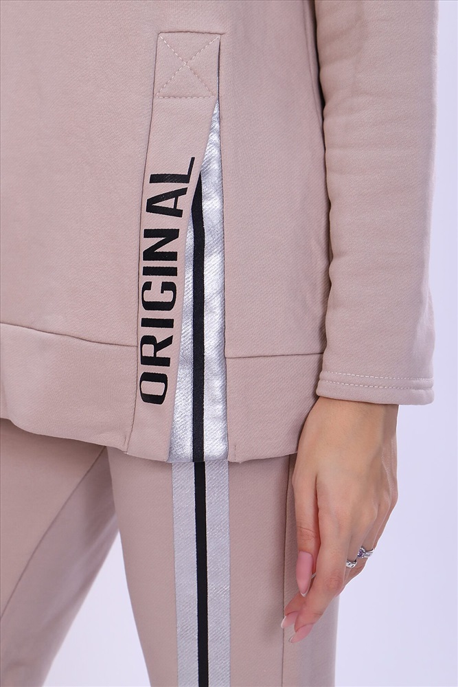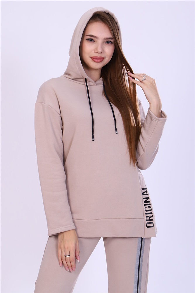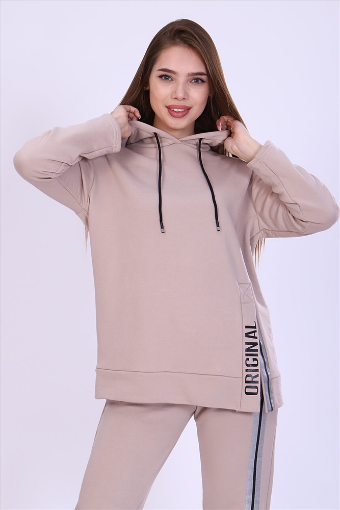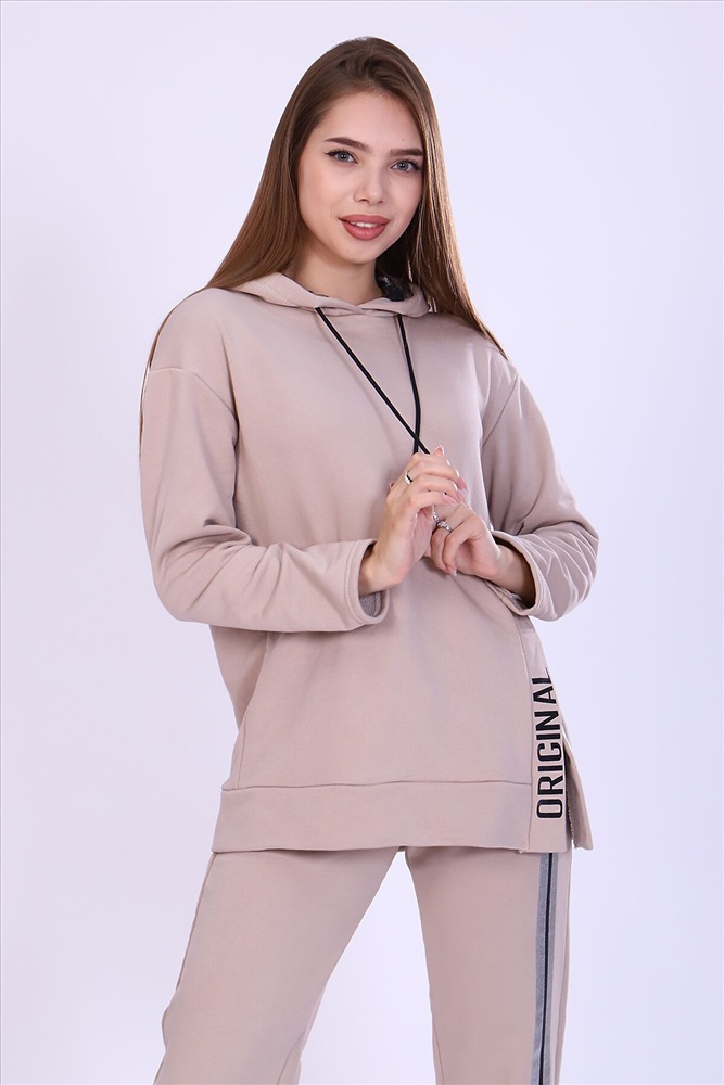 ID товара: 808030 Состав: Хлопок 65%, Полиэстер 35% Сезон: Осень/Зима Длина: Полная Фасон: Свободный крой Рукав: Длинные Крой брючин: Зауженный Рисунок: Надпись Тип карманов: С отрезным бочком Декоративные элементы: С капюшоном Основная ткань: Хлопок | Футер 3-х нитка Стиль: Спортивный Страна бренда: Россия Страна производства: Россия Костюм женский с принтом из футера 3-х нитки петля качества пенье. Свободная толстовка с капюшоном, обработанным внутри стильной тканью бифлекс; спущенная пройма, длинный рукав, низ передней полочки декорирован шлицей и принтом в виде надписи. Брюки прямые, полуприлегающего силуэта на распошитом поясе с удобными карманами, слегка зауженные к низу на резинке, украшены принтом в виде имитации лампаса, Тёплый, стильный костюм сделает ваш образ неповторимым. Это отличный выбор на холодную погоду. Благородные цвета изделия придают ему роскоши и элегантности. Комментарии к товару