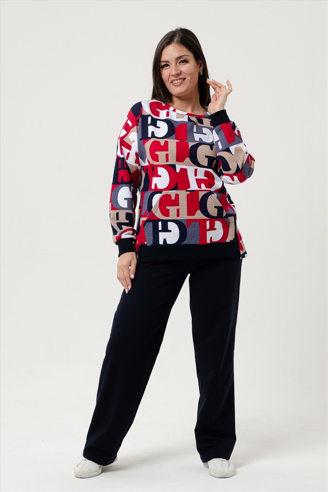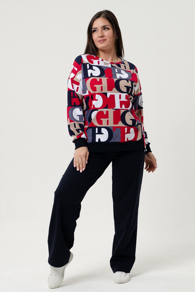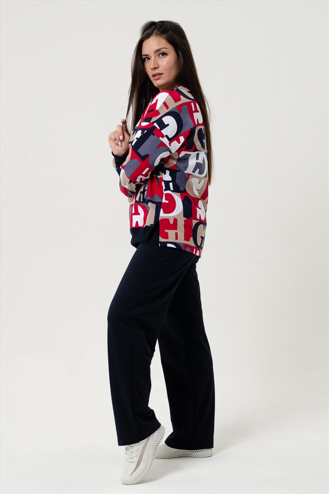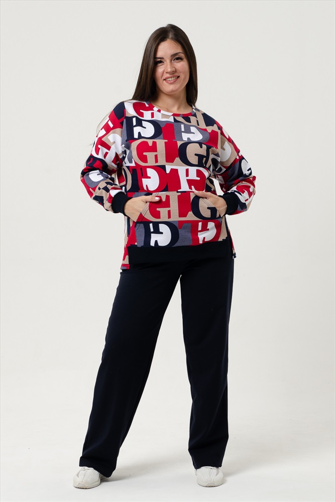 Состав: 72% хлопок, 23% полиэстер, 5% лайкра Модель: Костюм 27048 Тип товара: костюм с брюками Материал: футер с лайкрой 2-х нитка | футер с лайкрой 2-х нитка Бренд: Натали Суслова Карман: боковые | кенгуру Особенности: на резинке Отделка: с карманами | с манжетами Посадка: средняя посадка Рейтинг: Рейтинг 4 и выше Рисунок: геометрия | надпись Сезонность: лето | осень | весна | зима Силуэт: свободный Стиль: повседневный Воротник: без воротника Застежка: без застежки Костюм женский с брюками. На толстовке карман-кенгуру, боковой шов плавно переходит на перед, внизу которого небольшие разрезы, по переду внизу пояс. Горловина овальной формы, обработана небольшой бейкой. Брюки трубы с удобной посадкой, в боковых швах внутренние карманы. Костюм отлично подходит как для дома, так и для носки под верхнюю одежду. Таблица размеров и весакофта