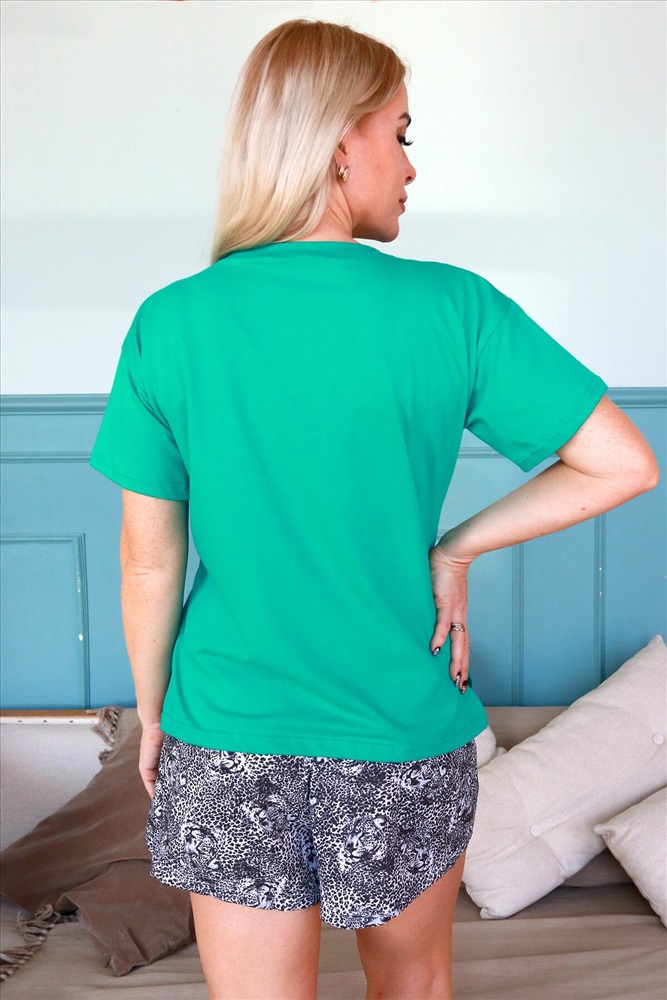 ID товара: 771887 Состав: 100% хлопок Сезон: Весна/Лето Длина: Средняя Фасон: Широкие Рукав: Короткий Вид застежки: Без застежки Декоративные элементы: Принт Основная ткань: 100% хлопок | Кулирка Стиль: Повседневный Страна бренда: Россия Страна производства: Россия Костюм женский состоит из футболки с коротким рукавом и круглым воротом. Шорты широкого кроя, высокой посадки, со шнурком в поясе. Женский костюм подойдет для повседневного использования как дома, так и на отдыхе Комментарии к товару