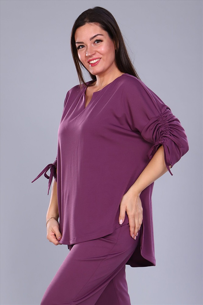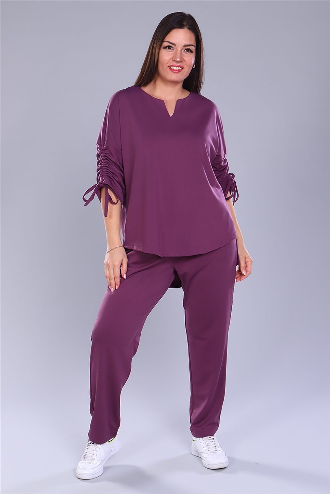 Идеальный костюм для повседневной жизни. Комплект состоит из брюк и туники. Костюм смотрится элегантно и стильно. Удлинённая модель туники гарантирует удобство и комфорт. Брюки умеренно свободные с резиной на поясе. Костюм позволит подчеркнуть свой стиль, создавать запоминающиеся образы. Можно сочетать с разной обувью и носить вещи по отдельности. Идеален для прогулок, благодаря мягкой и приятной к телу ткани, отлично подойдёт в качестве домашней одежды