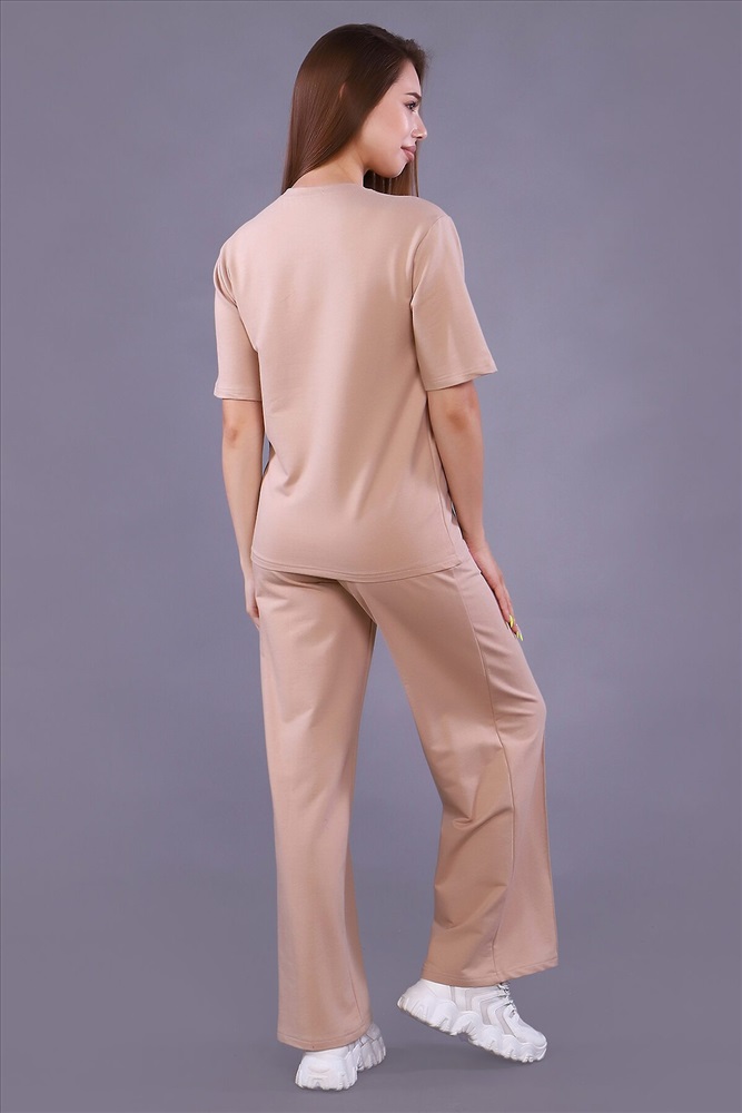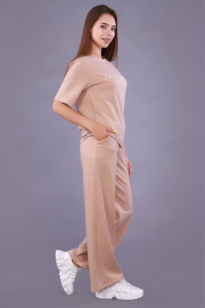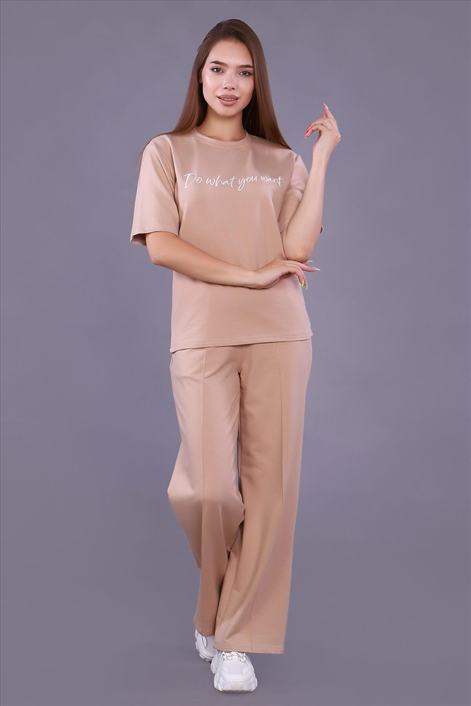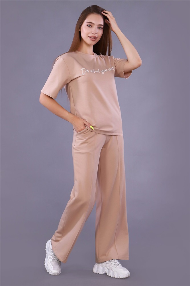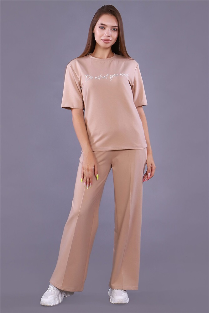 ID товара: 824262 Состав: Хлопок 75%, Полиэстер 20%, Лайкра 5% Сезон: Осень/Зима Длина: Средняя Фасон: Свободный крой Рукав: Короткие Крой брючин: Широкий Рисунок: Надпись Тип карманов: С отрезным бочком Декоративные элементы: Печатный принт Основная ткань: Хлопок | Футер 2-х нитка Стиль: Спортивный Страна бренда: Россия Страна производства: Россия Трикотажный костюм, состоящий из брюк и футболки. Женский костюм отлично подойдет для повседневной носки. Он красиво сидит на фигуре и приятен на ощупь. Брюки-палаццо с высокой посадкой идеально подойдут к любой фигуре, скроют возможные недостатки и подчеркнут достоинства. Эта модель брюк имеют высокую популярность. Брюки на широкой эластичной резинке, и оснащены удобными карманами. Трикотажный костюм не сковывает движения и приятен на ощупь. Костюм для женщин станет настоящей находкой для тех, кто ценит комфорт и любит создавать свой уникальный образ. Комментарии к товару