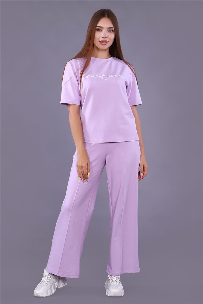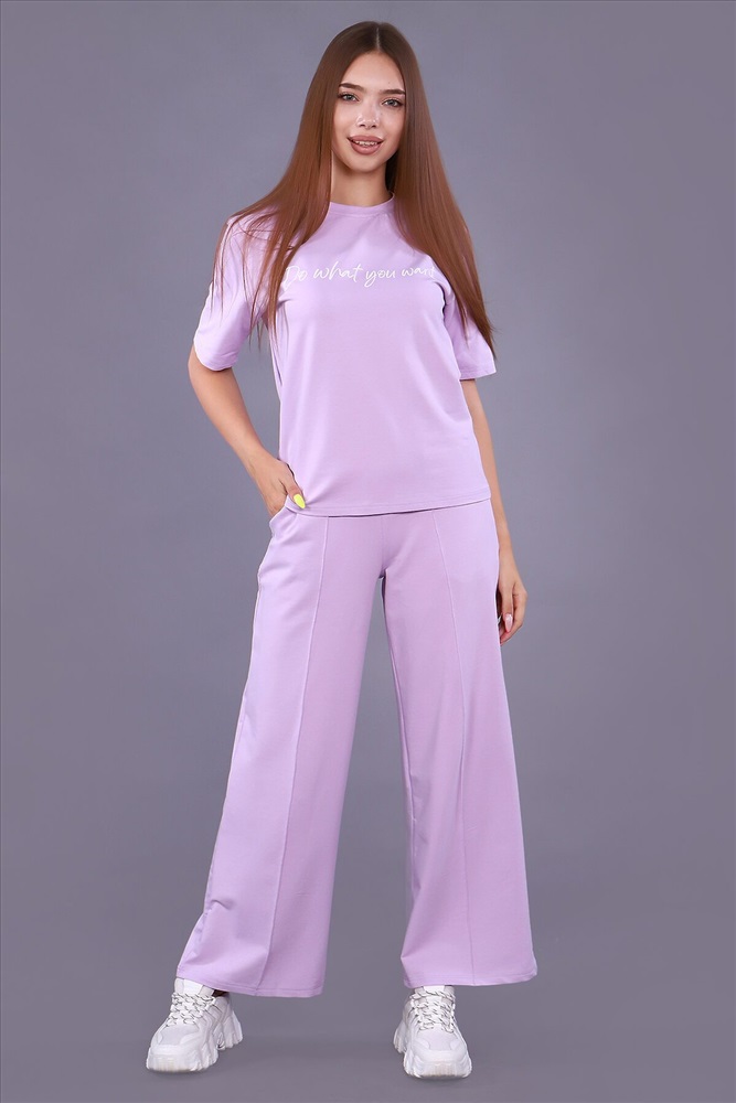 Страна производства: Россия Трикотажный костюм, состоящий из брюк и футболки. Женский костюм отлично подойдет для повседневной носки. Он красиво сидит на фигуре и приятен на ощупь. Брюки-палаццо с высокой посадкой идеально подойдут к любой фигуре, скроют возможные недостатки и подчеркнут достоинства. Эта модель брюк имеют высокую популярность. Брюки на широкой эластичной резинке, и оснащены удобными карманами. Трикотажный костюм не сковывает движения и приятен на ощупь. Костюм для женщин станет настоящей находкой для тех, кто ценит комфорт и любит создавать свой уникальный образ.
