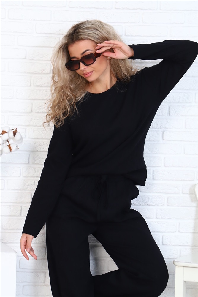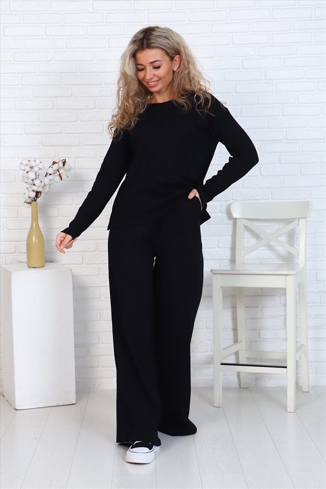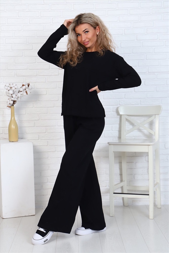 ID товара: 868079 Состав: 92% Хлопок, 8% Эластан Сезон: Осень/Зима Длина: Полная Фасон: Полуприлегающий Рукав: Длинные Вид застежки: Шнурок Крой брючин: Широкий Тип карманов: В шве Основная ткань: Хлопок | Лапша Стиль: Повседневный Страна бренда: Россия Страна производства: Россия Женский трикотажный костюм стал настоящим трендом моды, костюм-лапша с брюками-клеш, с удобной высокой посадкой и поясом на мягкой резинке. Модный легкий трикотажный костюм станет отличным выбором для повседневного образа. Комплект на каждый день - неотъемлемая часть гардероба любой девушки, которая любит комфорт и тепло. Модный костюм подходит любым женщинам, вне зависимости от параметров фигуры, роста и возраста, ведь смотрится всегда элегантно и просто. В костюме лапша с широкими брюками палаццо будет комфортно и уютно на прогулке, в путешествии, на даче, а так же можно заниматься домашними делами. Брючный комплект можно сочетать по отдельности с базовыми вещами. Рост модели на фото 165см, размер 44 Комментарии к товару