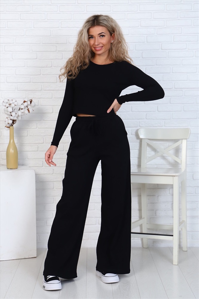 Страна производства: Россия Костюм с широкими штанами станет отличным выбором для прогулок по городу, занятий спортом, фитнеса, йоги, в качестве домашней одежды. Брюки палаццо подходят для любого типа фигуры, скрывают ее недостатки и подчеркивают достоинства. Каждый элемент костюма можно носить отдельно и сочетать с другими вещами в гардеробе. Легкие брюки клеш с высокой посадкой в стиле палаццо из красивого однотонного материала акцентируют внимание на достоинствах, мягкая резинка не сдавливает тело, поэтому подойдет также для беременных. Рост модели на фото 165 см, размер 44