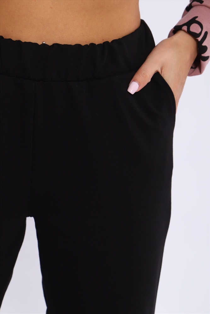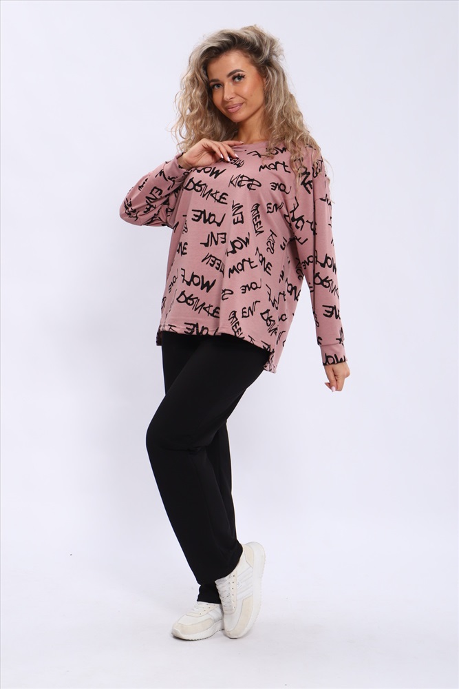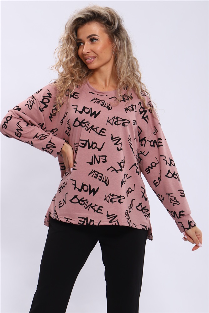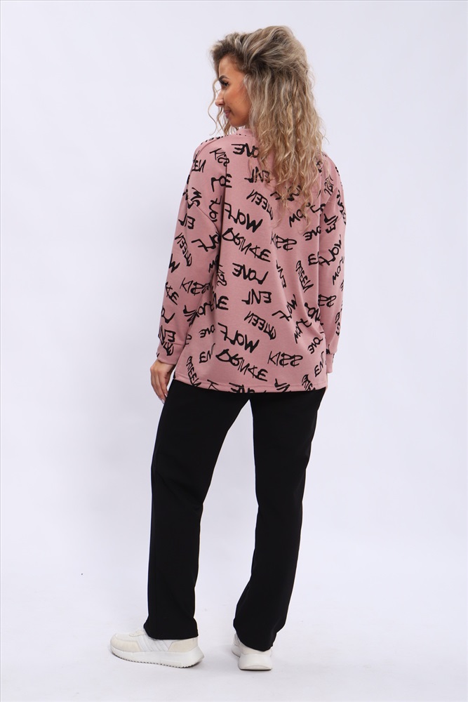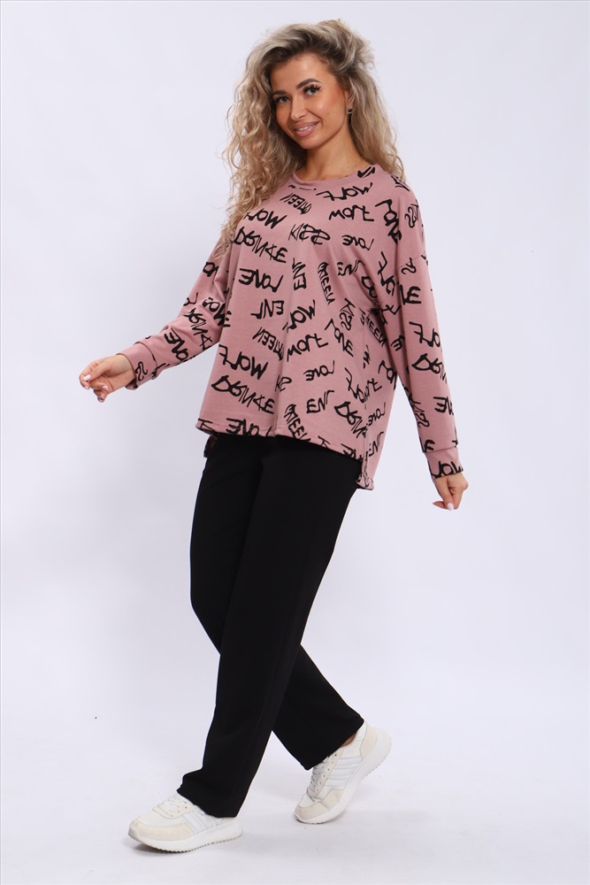 Застежка: без застежки Костюм женский состоит из кофты свободного кроя и брюк с карманами. Плечо спущенное, спинка удлиненная.