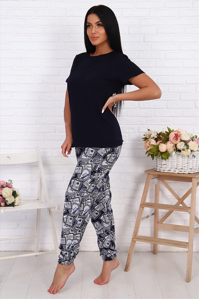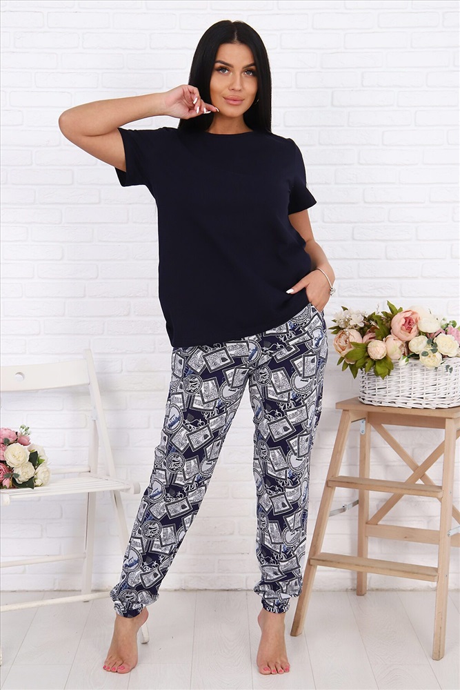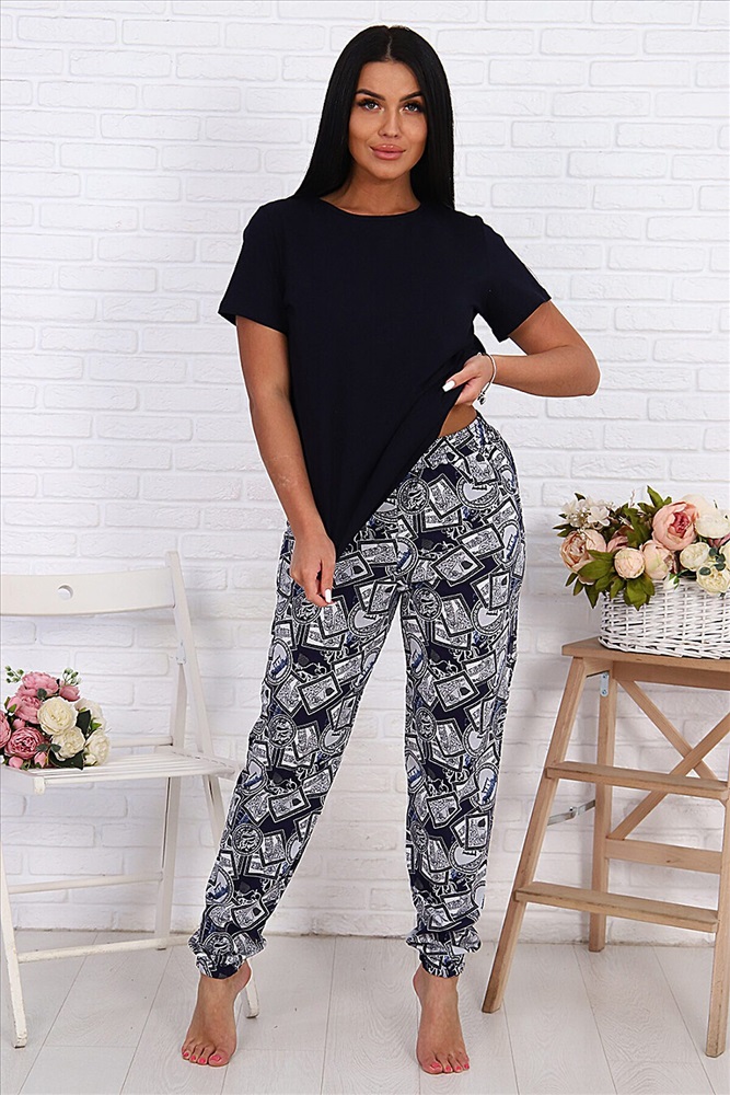Женский костюм свободного силуэта выполнен из 100% хлопчатобумажного полотна. Ни к чему не обязывающую однотонную футболку, идеально сочетающуюся по цвету с брюками, в любой момент можно варьировать с другими видами одежды. А стильные и модные брюки - бананы, которые снова ворвались в моду, вызвав огромный ажиотаж у представительниц прекрасного пола - это идеальный вариант для дома и отдыха. В данной модели есть все качества, которые так необходимы для максимального комфорта: высокая посадка брюк, удобные вместительные карманы, пояс-резинка, выполненный на специальной поясной машине, дышащая х/б ткань и конечно же, свобода движения.