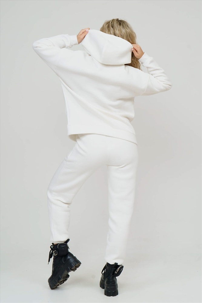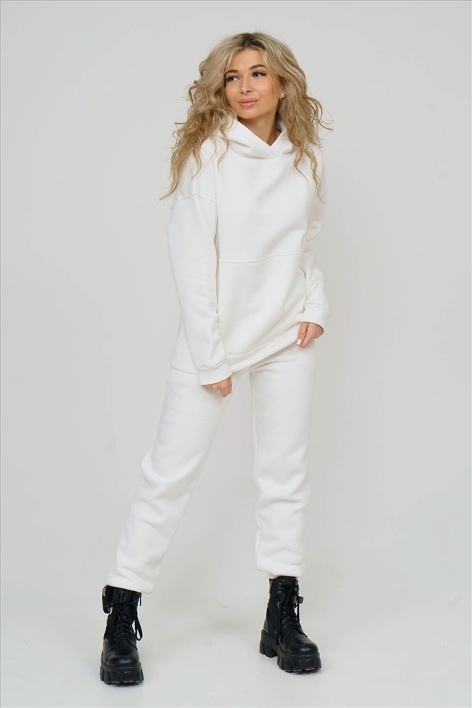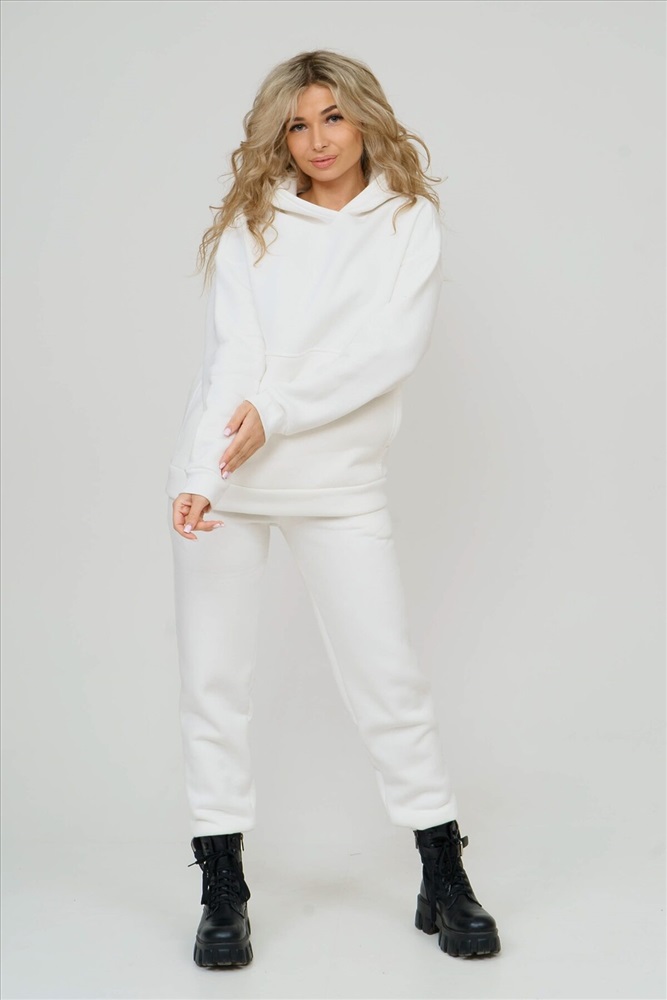 Женский костюм в стиле oversize - это излюбленный тренд современности. Данная модель выполнена из футера 3-х нитки с начёсом - это самый толстый, плотный и тёплый вид трикотажа в своей группе. Данный вид футера имеет множество достоинств: натуральный состав, теплорегуляция, гипоаллергенность, прочность, формоустойчивость (при правильном уходе и стирке 30 - 40 °С). Костюм состоит из объёмной толстовки с капюшоном на запах и брюк с боковыми карманами. На полочке толстовки есть модный и удобный накладной карман. Манжеты рукавов и брюк выполнены из качественного кашкорсе. Линия плеча спущена. Длина рукава указана от точки основания шеи. Пояс брюк выполнен на специализированной поясной машине. Внимание!!! При носке плотный начёс костюма приминается и может оставлять следы на одежде, это проходит после 1-2 стирки.