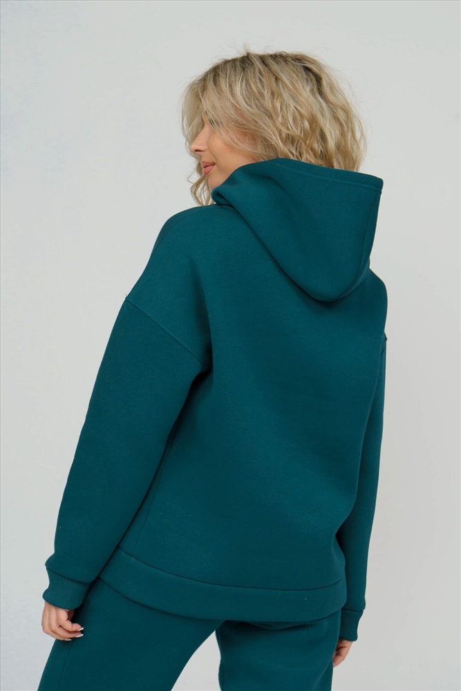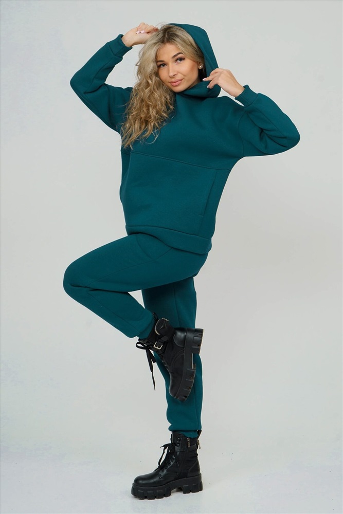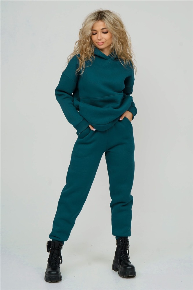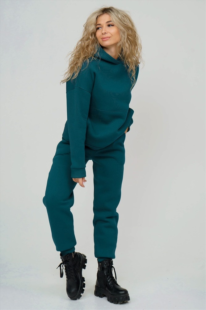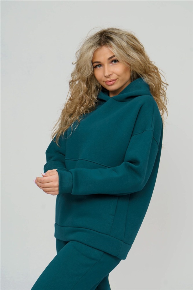Женский костюм в стиле oversize - это излюбленный тренд современности. Данная модель выполнена из футера 3-х нитки с начёсом - это самый толстый, плотный и тёплый вид трикотажа в своей группе. Данный вид футера имеет множество достоинств: натуральный состав, теплорегуляция, гипоаллергенность, прочность, формоустойчивость (при правильном уходе и стирке 30 - 40 °С). Костюм состоит из объёмной толстовки с капюшоном на запах и брюк с боковыми карманами. На полочке толстовки есть модный и удобный накладной карман. Манжеты рукавов и брюк выполнены из качественного кашкорсе. Линия плеча спущена. Длина рукава указана от точки основания шеи. Пояс брюк выполнен на специализированной поясной машине. Внимание!!! При носке плотный начёс костюма приминается и может оставлять следы на одежде, это проходит после 1-2 стирки.