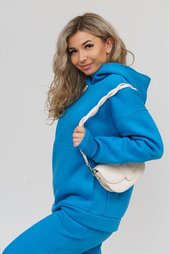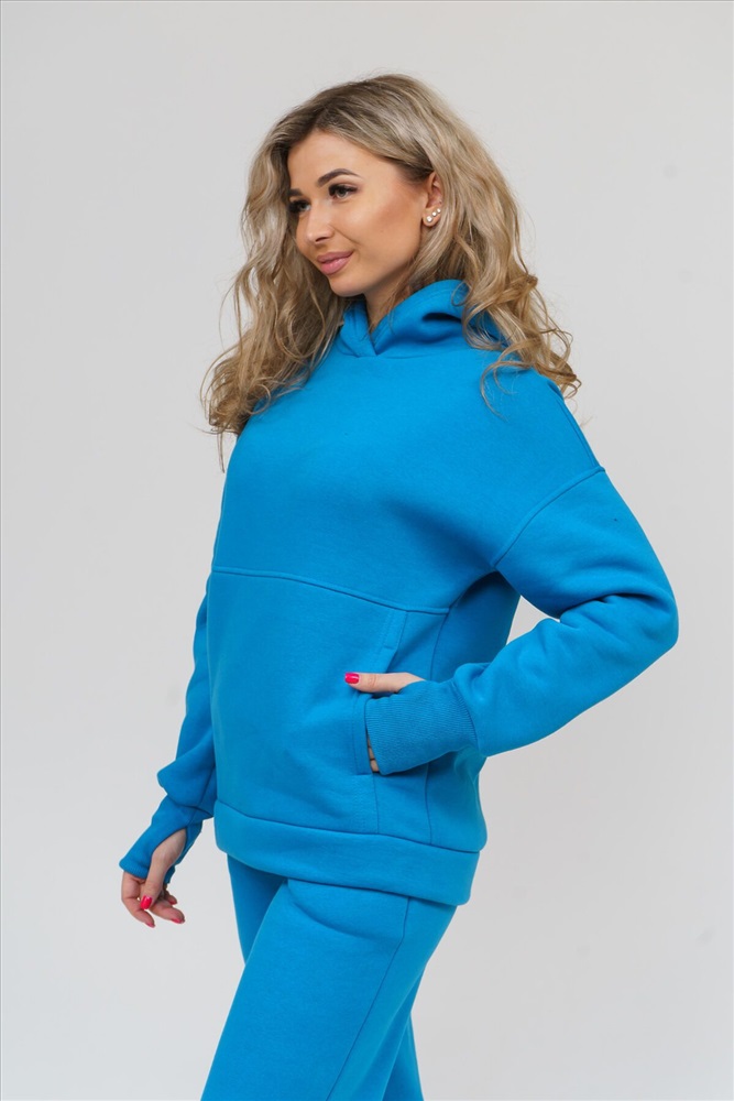 ID товара: 818096 Состав: 65% хлопок, 35 % п/э Сезон: Осень/Зима Длина: Полная Фасон: Прямой Рукав: Длинный Крой брючин: Прямой Тип карманов: С отрезным бочком Основная ткань: Хлопок | Футер 3-х нитка с начесом Стиль: Спортивный Страна бренда: Россия Страна производства: Россия Модный женский костюм выполнен из качественного футера 3-х нитки с начёсом. Данный вид футера имеет множество достоинств: натуральный состав, теплорегуляция, гипоаллергенность, прочность, формоустойчивость (при правильном уходе и стирке 30-40 °С). Костюм состоит из объёмной толстовки с капюшоном и брюк с боковыми карманами. На полочке толстовки есть модный и удобный накладной карман. Рукав с актуальной сейчас спущенной линией плеча. Манжеты рукавов и брюк выполнены из качественного кашкорсе не деформирующегося со временем. В свою очередь манжеты рукавов в данной толстовке удлинённые с прорезью для большого пальца. Это очень удобная деталь для прогулок в прохладную погоду. Длина рукава указана от точки основания шеи. Пояс брюк выполнен на специализированной машине, благодаря которой швы на изделии ровные и качественные. Костюм такого плана будет идеально подходить для отдыха, работы, учёбы и повседневной носки. Если Вы счастливчик, то при покупке костюма вам улыбнётся удача... Внимание!!! При носке плотный начёс костюма приминается и может оставлять следы на одежде, это проходит после 1-2 стирки. Комментарии к товару