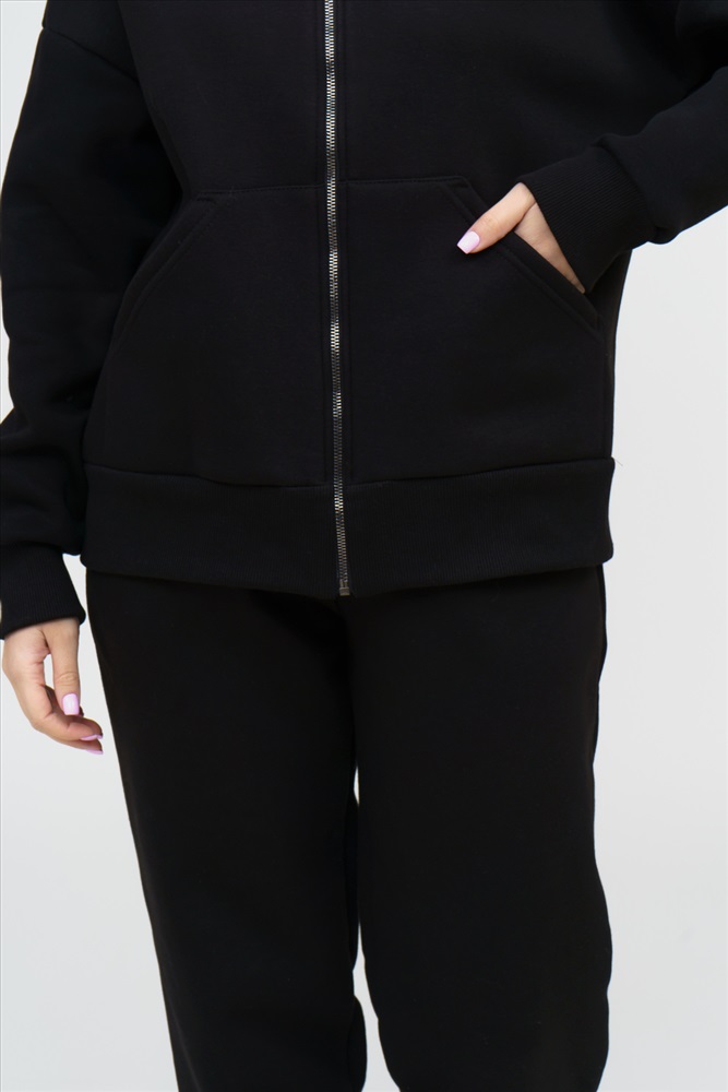 Модный женский костюм выполнен из качественного футера 3-нитки с начёсом, который обладает необыкновенной мягкостью, натуральностью, гипоаллергенностью и формоустойчивостью (при правильном уходе и стирке 30-40 С), и обеспечивает максимальное удобство и комфорт при носке. Костюм состоит из современной zip hoodi свободного силуэта, которую дополняет: рукав с актуальной сейчас спущенной линией плеча, удобные карманы кенгуру и манжеты. Молния выполнена из качественных пластиковых зубьев закрепленных на прочной тесьме со стойким металлическим напылением, что обеспечивает плавное скольжение бегунка. А также удобные брюки, которые дополнены вместительными боковыми карманами, поясом выполненным на специализированной поясной машине и манжетами выполненными из качественного кашкорсе. Длина рукава указана от точки основания шеи.