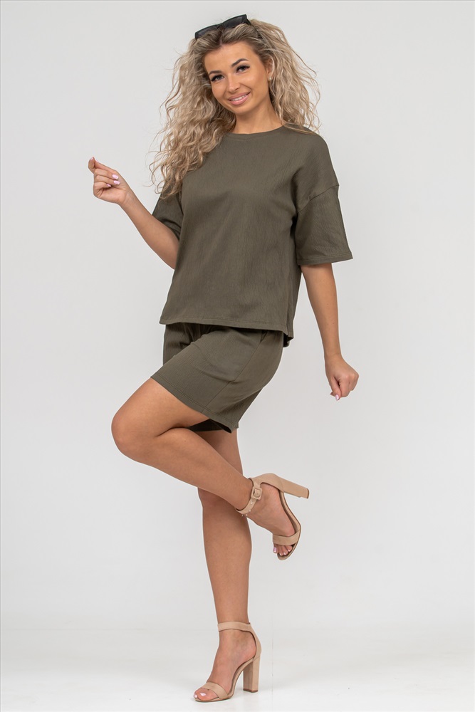 Состав: 88% хлопок; 10% п/э; 2% лайкра Модель: Костюм 36645 Тип товара: костюм с шортами Материал: жатка | жатка Бренд: Натали Суслова Карман: боковые Особенности: на резинке Отделка: с карманами Посадка: высокая посадка Рисунок: однотонные Рукав: короткий рукав Сезонность: лето | осень | весна | зима Силуэт: свободный Стиль: молодежный | повседневный Воротник: без воротника Застежка: без застежки Костюм - футболка и шорты, выполнен из кулирки гипе жатка компакт. Жатка - это ткань с мятой структурой, декоративными заломами и складками. Имеет много положительных качеств: хорошо тянется, упругая, красивая текстура, неприхотливая в уходе, прочная, износостойкая, не мнётся, не нуждается в глажке и приятная к телу. Костюм отлично подойдет для дома, прогулок, походов на пляж или в спортзал. Этот яркий и модный костюм прекрасно сочетается со стильными образами на любой вкус. Он легкий и свободный, что делает его идеальным для лета и весны. Двойка из трикотажа подойдет для дома, фитнеса, танцев или пляжа. Отлично подойдёт для тех, кто любит яркие и популярные новинки. Наши вещи идеально подходят для пляжного отдыха на море, даче или путешествий и будут выглядеть прекрасно в любой ситуации. Костюм подходит для высоких и невысоких женщин, а также для полных и худых девушек. Это базовая вещь в гардеробе каждой женщины, которая ценит качество и стиль. Используйте его как спортивную одежду для занятий фитнесом или другими видами спорта. Он также прекрасно подходит для дачных прогулок и весенних поездок. Костюм - это отличный выбор для тех, кто ищет красивый и удобный наряд. Наш комплект из футболки и шорт - молодежный и стильный выбор для каждой женщины, девушки и подростка. Он прекрасно сочетается с разной обувью и аксессуарами, что делает его универсальным и практичным. Ориентируясь по таблице замеров, обратите внимание, что замеры длины рукава проводились от точки основания шеи. Таблица размеров и весафутболка