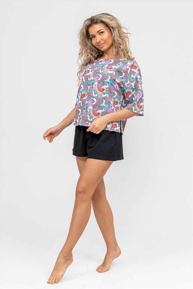 Состав: 100% хлопок Модель: Костюм 36719 Тип товара: костюм с шортами Материал: кулирка | кулирка Бренд: Натали Суслова Длина: короткий Карман: без карманов Назначение: для дома НДС: 22% Особенности: на резинке Посадка: высокая посадка Рисунок: зверюшки Рукав: рукав 3/4 Сезонность: лето | осень | весна | зима Силуэт: свободный Стиль: домашний Воротник: без воротника Застежка: без застежки Женский модный костюм - это невероятно удобный вариант одежды для дома, сна, отдыха или пижамной вечеринки. Домашний костюм двойка сшит из натурального хлопка, лёгкого и приятного материала. Пижама состоит из свободной футболки с новым трендовым дизайном ткани и свободных шорт. Стильный костюм комфортно садится по фигуре, выглядит женственно и привлекательно, очаровывая всех. А также модель такого плана - это отличная идея для полезного и практичного подарка на день рождения, 14 февраля, 8 марта и любой другой праздник. Мы уверены, что эта хлопковая пижама подарит Вам истинное наслаждение при каждодневном использовании. Выбирайте деликатный способ стирки при температуре 30С, тогда домашний комплект прослужит долго. Ориентируясь по таблице замеров, обратите внимание, что замеры длины рукава проводились от точки основания шеи. Таблица размеров и весафутболка