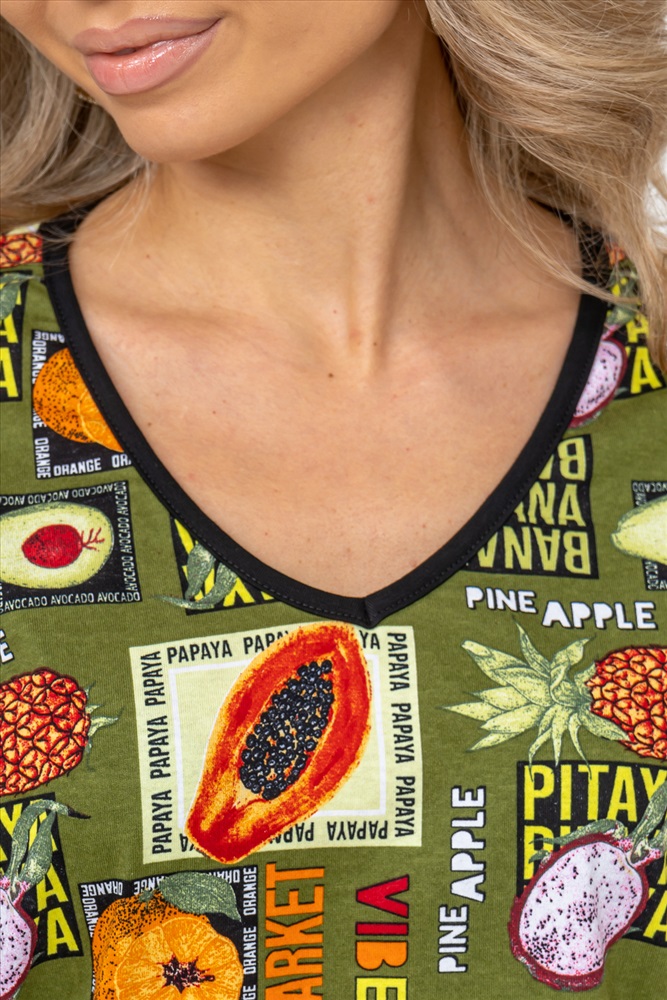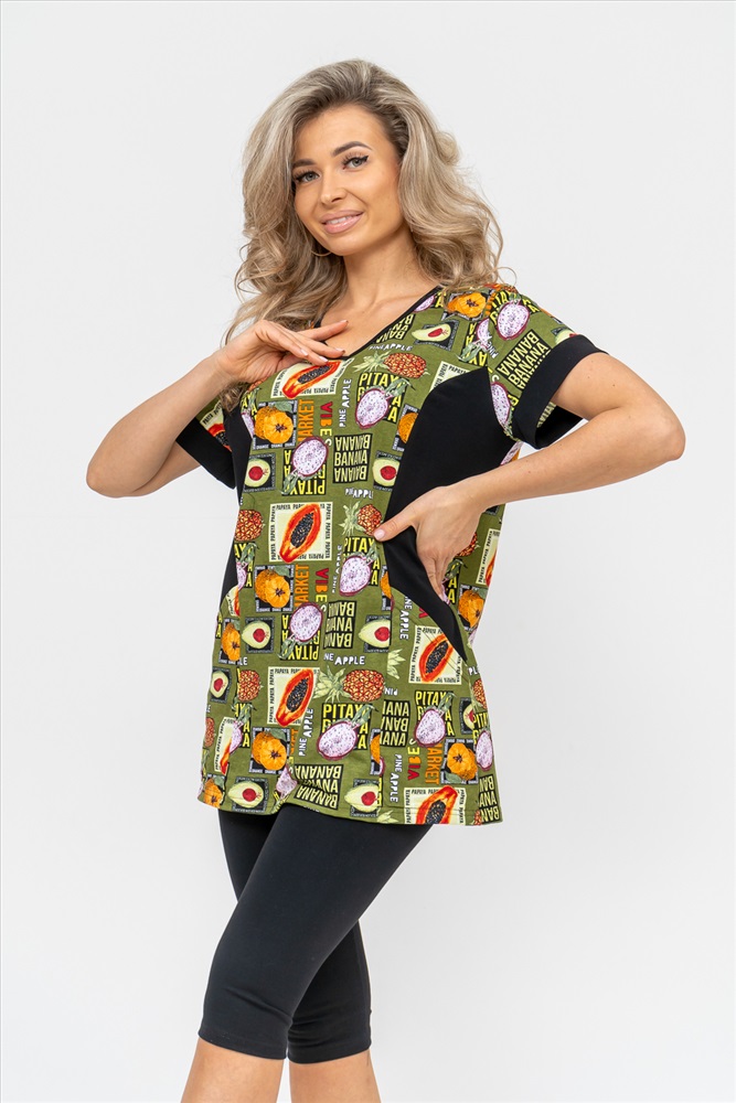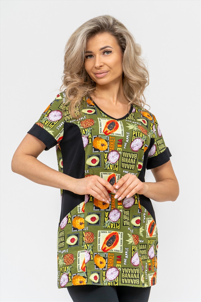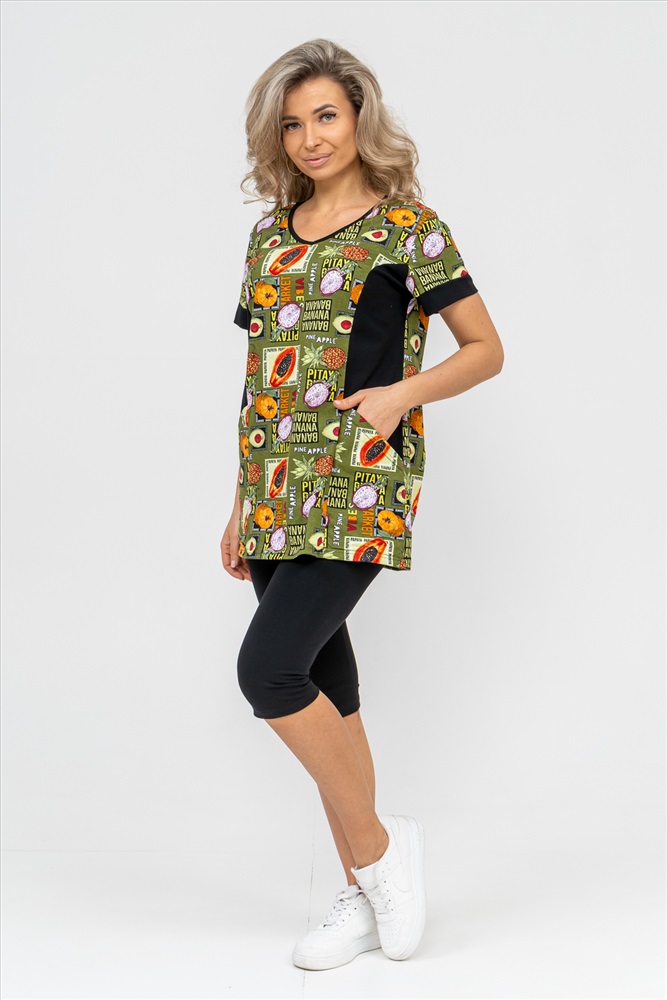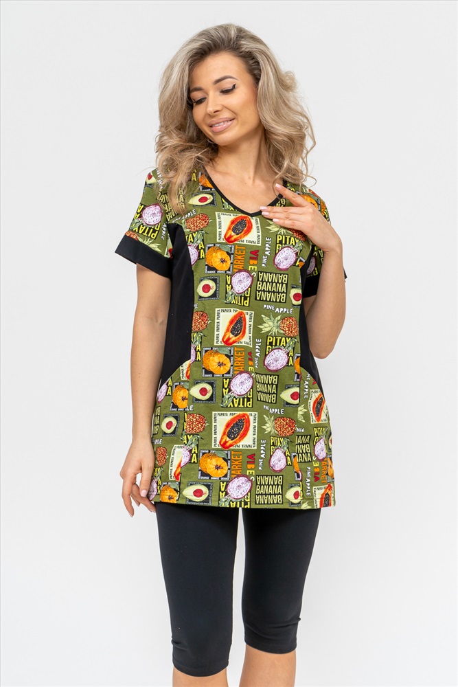 Женский костюм полуприлегающего силуэта состоит из туники и бриджей. 100% дышащий хлопок туники и эластичная вискоза бриджей несут в себе удобство при носке, гигроскопичность и износостойкость. V-образный вырез горловины придаёт изделию женственный вид. Для удобства туника имеет вместительные накладные карманы и втачные рукава с манжетами. Рельефы на полочке изделия создают идеальную посадку и безупречный внешний вид. Бриджи на резинке с высокой посадкой. В костюме такого плана Вы будете чувствовать себя комфортно как дома, так и на любимой даче. Эта двойка идеально подойдет для летнего отдыха на даче, на море или просто для девушек, которые хотят чувствовать себя уютно и комфортно дома. Летний женский костюм подходит для поездок и путешествий, загородного отдыха на природе, а также для получения лечения в больнице или санатории. Повседневное хлопковое изделие с бриджами - отличная идея для подарка любимой жене, маме, сестре или подруге на день рождения, 8 Марта или по любому другому приятному поводу. Рекомендация: для того чтобы продлить яркую жизнь Вашему костюму для дома и отдыха из хлопка, стирку производить при температуре не выше 30 градусов, а во избежание деформации изделия не прибегать к ручному отжиму (не перекручивать), утюжить слегка недосушенное изделие утюгом на паровом режиме. Покупайте наши красивые и удобные домашние костюмы с бриджами и носите с удовольствием! Приятных покупок!