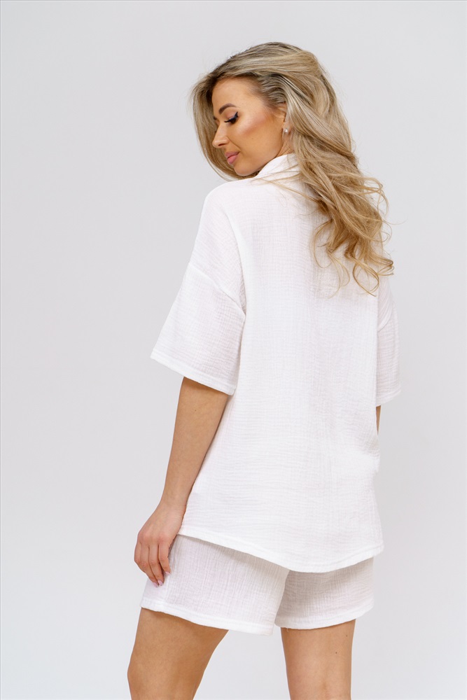 Состав: 100% хлопок Модель: Костюм 36761 Тип товара: костюм с шортами Материал: муслин | муслин Бренд: Натали Суслова Карман: боковые Назначение: для офиса Особенности: на резинке Отделка: с карманами Посадка: высокая посадка Рисунок: однотонные Рукав: короткий рукав Сезонность: лето | осень | весна | зима Силуэт: прямой | свободный Стиль: офисный | повседневный Воротник: рубашечный воротник Застежка: пуговицы Модный костюм в стиле oversize выполнен из воздушного и приятного к телу 2-х слойного жатого муслина. Это одна из самых модных и популярных моделей сезона. Рубашка имеет слегка удлинённую спинку, спущенную линию плечевого шва, укороченный рукав, классический рубашечный воротник и планку на пуговках. Шорты бермуды с высокой посадкой создадут модный образ для любой девушки. Пояс шорт выполнен на специализированной поясной машине, что добавляет изделию большую износостойкость и эстетический внешний вид. По бокам, для удобства, расположены вместительные карманы. Изделие из муслина имеет много положительных качеств: нежность и лёгкость, высокая прочность и воздухопроницаемость. А модные цвета этого лета добавляют законченность деталям и определяют must have сезона. За счёт свободного фасона костюм можно носить с любым типом фигуры, отлично подойдёт для беременных женщин, а также кормящих мам. Женская хлопковый костюм идеален как для лета, так и для прохладного вечера. С помощью такого костюма Вы можете создать любой образ. А также отправиться на праздник, вечеринку или на прогулку, на пляж или провести незабываемый вечер дома. Модель такого плана идеально подойдёт и в качестве подарка для себя и своих любимых! Стирать муслиновые вещи нужно только в теплой воде при температуре не выше 40С. У нас Вы также можете приобрести только рубашку из такого материала- модель 36766 и создать свой неповторимый образ! Ориентируясь по таблице замеров, обратите внимание, что замеры длины рукава проводились от точки основания шеи. Таблица размеров и весарубашка