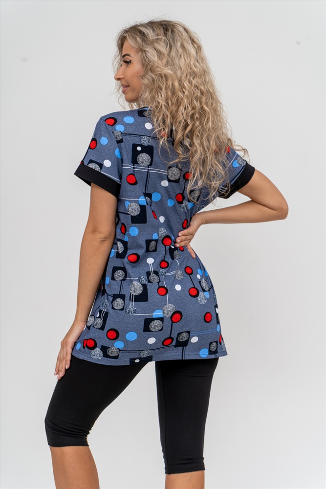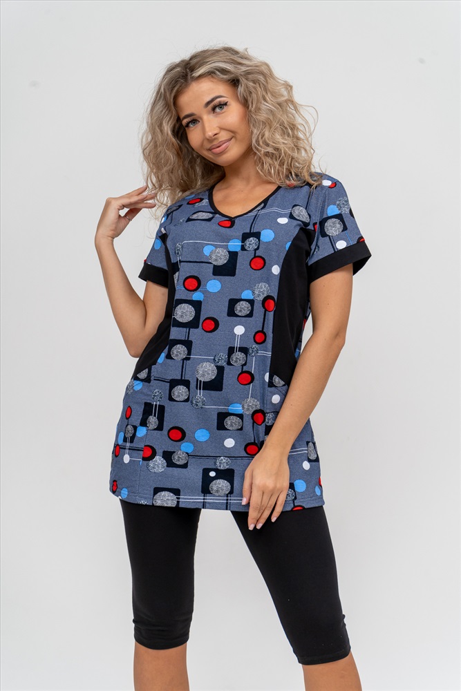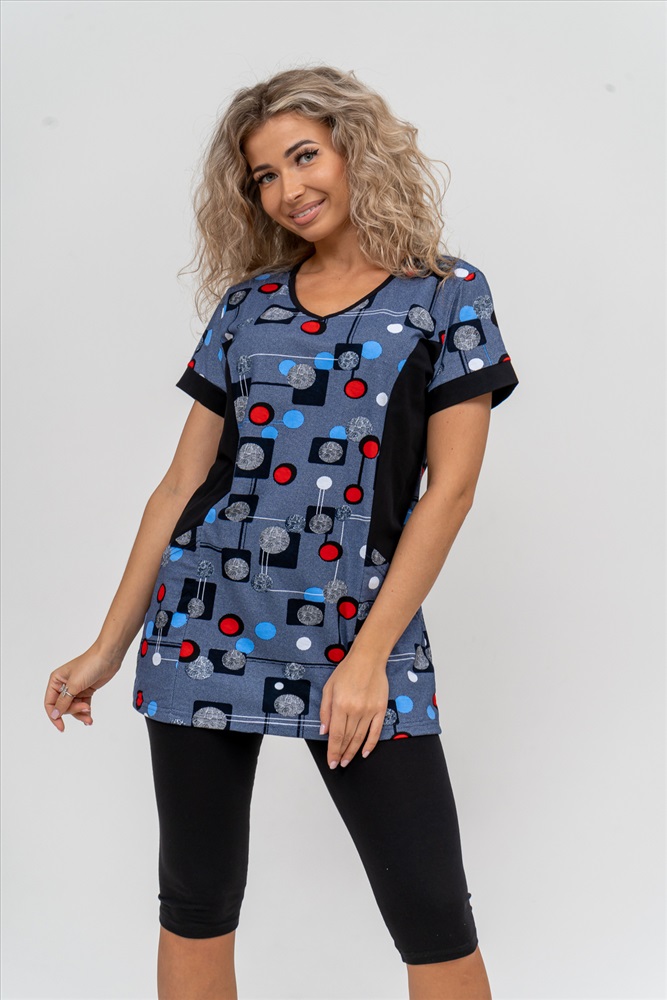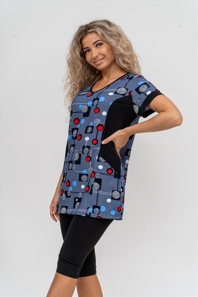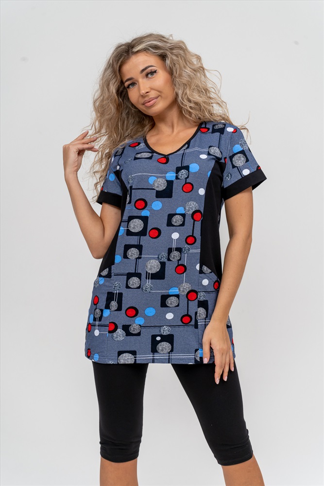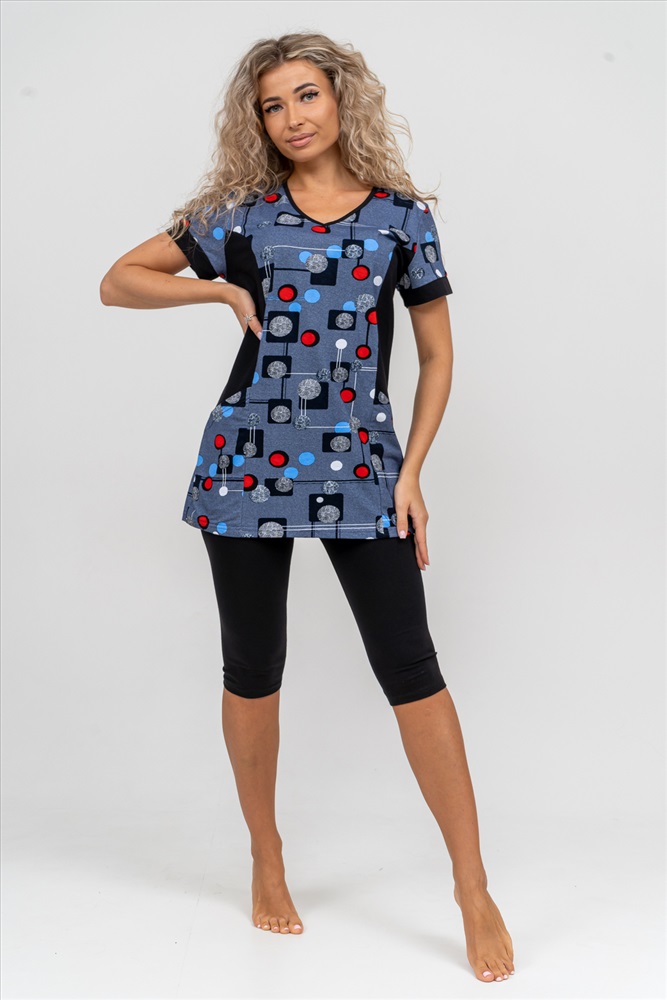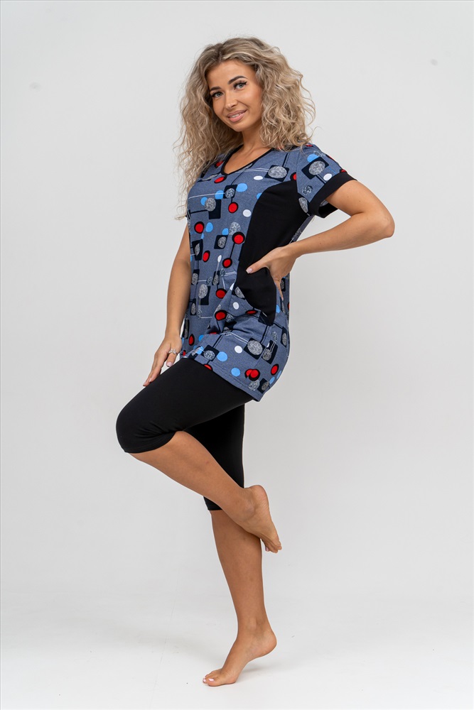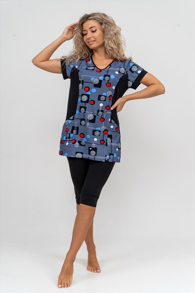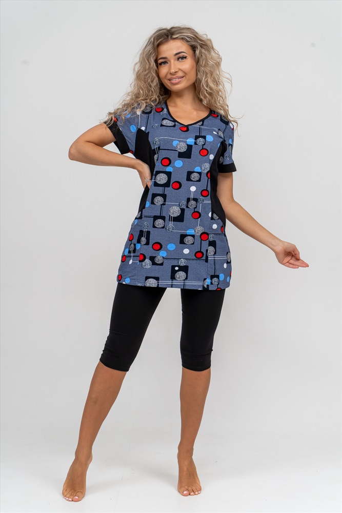 Состав: 100% хлопок; 95% хлопок, 5% лайкра Модель: Костюм 36827 Тип товара: костюм с бриджами Материал: кулирка | кулирка с лайкрой | кулирка | кулирка с лайкрой Бренд: Натали Суслова Карман: накладные Назначение: для дачи | для дома НДС: 22% Особенности: на резинке Отделка: с карманами Посадка: средняя посадка Рисунок: геометрия Рукав: короткий рукав Сезонность: лето | осень | весна | зима Силуэт: прилегающий | свободный Стиль: домашний Воротник: без воротника Застежка: без застежки Женский костюм полуприлегающего силуэта состоит из туники и бриджей. 100% дышащий хлопок туники и эластичные бриджи несут в себе удобство при носке, гигроскопичность и износостойкость. V-образный вырез горловины придаёт изделию женственный вид. Для удобства туника имеет вместительные накладные карманы и втачные рукава с манжетами. Рельефы на полочке изделия создают идеальную посадку и безупречный внешний вид. Бриджи на резинке с высокой посадкой. В костюме такого плана Вы будете чувствовать себя комфортно как дома, так и на любимой даче. Эта двойка идеально подойдет для летнего отдыха на даче, на море или просто для девушек, которые хотят чувствовать себя уютно и комфортно дома. Летний женский костюм подходит для поездок и путешествий, загородного отдыха на природе, а также для получения лечения в больнице или санатории. Повседневное хлопковое изделие с бриджами - отличная идея для подарка любимой жене, маме, сестре или подруге на день рождения, 8 Марта или по любому другому приятному поводу. Рекомендация: для того чтобы продлить яркую жизнь Вашему костюму для дома и отдыха из хлопка, стирку производить при температуре не выше 30 градусов, а во избежание деформации изделия не прибегать к ручному отжиму (не перекручивать), утюжить слегка недосушенное изделие утюгом на паровом режиме. Покупайте наши красивые и удобные домашние костюмы с бриджами и носите с удовольствием! Приятных покупок! Таблица размеров и весатуника