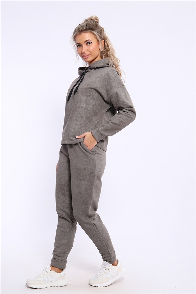 Застежка: без застежки Женский костюм выполнен из футера на меху высокого качества с дизайном варёнка. Вареная ткань - особым образом обработанная ткань, что придает ей некий красивый, специфический цвет. Эта ткань обладает мягкой текстурой и повышенной теплоизоляцией благодаря наличию меха. Она сочетает в себе прочность, что делает ее отличным вариантом для пошива спортивной одежды. Материал отличается уникальными свойствами: футер на меху способен удерживать тепло, обеспечивая максимальный комфорт в холодное время года. Его хорошо использовать для изготовления теплых толстовок и костюмов. Ткань выполнена из высококачественного сырья и обладает высокой износостойкостью. Она не теряет форму после стирки и не выцветает, что гарантирует долгий срок службы вашего изделия. Костюм состоит из толстовки и брюк. Толстовка с капюшоном и шнурком. Линия плеча спущена, длинный рукав. По низу толстовки имеется резинка с фиксатором, с помощью которой Вы можете собрать изделие как вам хочется и нравится. Брюки представлены с вместительными боковыми карманами. Манжеты брюк выполнены из основного материала, а пояс на специализированной поясной машине, что делает швы ровными и качественными. Свободный крой прекрасно будет смотреться на дамах с любыми формами. Костюм такого плана представлен в широкой размерной сетке, что позволяет выбрать его как девушке, так и женщине. Однотонный костюм модных расцветок будет удачным выбором для поездок в отпуск, на пикник, для школы, для активного отдыха и прогулок по городу. Будет гармонично сочетаться как с кроссовками, так и с ботинками. Используя эту модель в качестве домашнего костюма, Вы поймёте, что это именно тот самый идеальный вариант, в котором будете себя чувствовать удобно, комфортно и современно. Костюм с брюками - это настоящая находка для тех, кто ценит свою индивидуальность! Ориентируясь по таблице замеров, обратите внимание, что замеры длины рукава проводились от точки основания шеи.