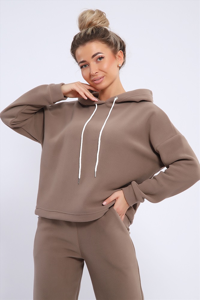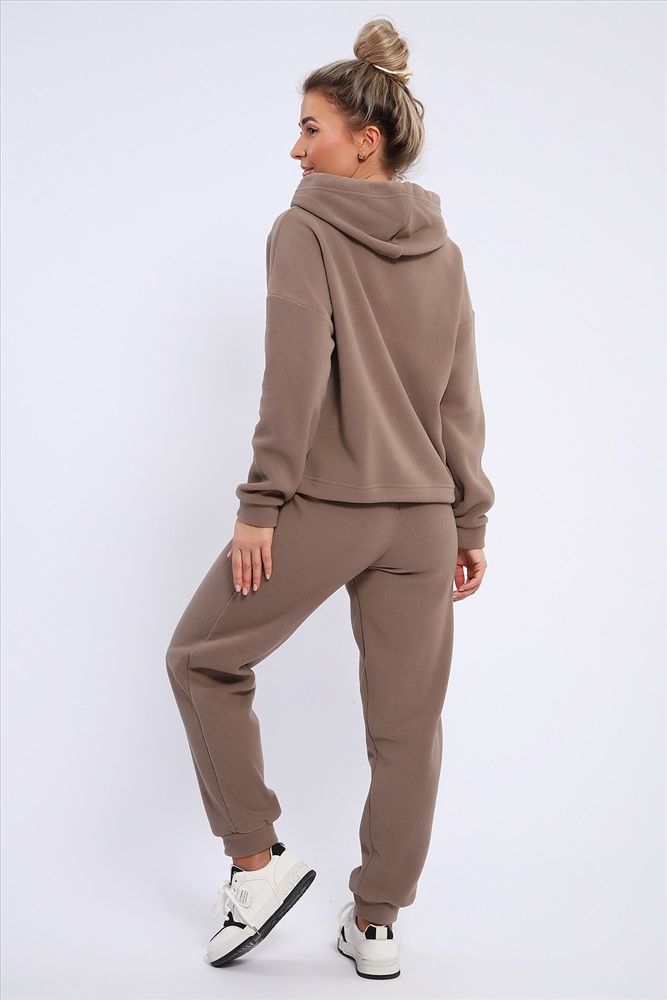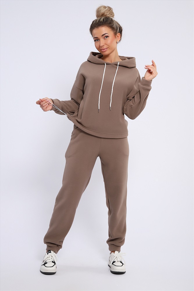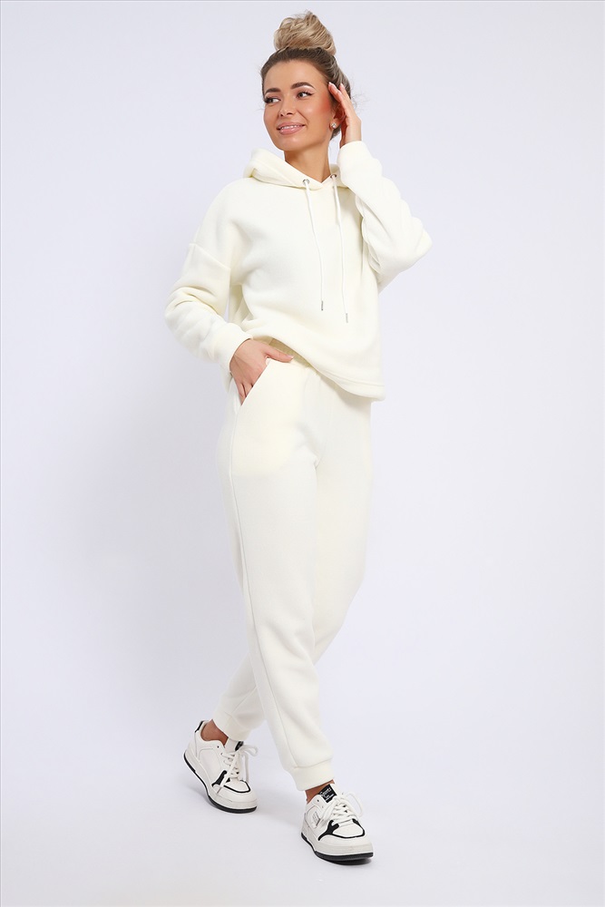 Женский костюм выполнен из флиса высокого качества. Флис - ткань с ворсистой поверхностью, что позволяет эффективно сохранять тепло. Материал прочный, эластичный, влагостойкий. Хорошо пропускает влагу, при этом не впитывает ее. По теплостойкости превосходит шерсть, но намного легче. Воздухопроницаемая гигроскопичная ткань создает для тела комфортный микроклимат. Материал гипоаллергенный, подходит для изготовления одежды детям, в том числе новорожденным. Изделия из флиса легкие, не мнутся, не деформируются, не вытягиваются.В такой одежде удобно и комфортно. Эластичность материала позволяет легко двигаться. Костюм состоит из толстовки и брюк. Толстовка с капюшоном и шнурком. Линия плеча спущена, длинный рукав. По низу толстовки имеется резинка с фиксатором, с помощью которой Вы можете собрать изделие как вам хочется и нравится. Брюки представлены с вместительными боковыми карманами. Манжеты брюк выполнены из основного материала, а пояс на специализированной поясной машине, что делает швы ровными и качественными. Свободный крой прекрасно будет смотреться на дамах с любыми формами. Костюм такого плана представлен в широкой размерной сетке, что позволяет выбрать его как девушке, так и женщине. Однотонный костюм модных расцветок будет удачным выбором для поездок в отпуск, на пикник, для школы, для активного отдыха и прогулок по городу. Будет гармонично сочетаться как с кроссовками, так и с ботинками. Используя эту модель в качестве домашнего костюма, Вы поймёте, что это именно тот самый идеальный вариант, в котором будете себя чувствовать удобно, комфортно и современно. Костюм с брюками - это настоящая находка для тех, кто ценит свою индивидуальность!