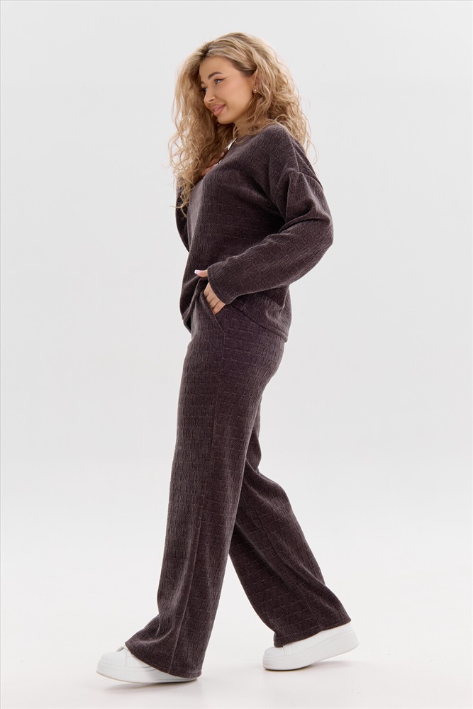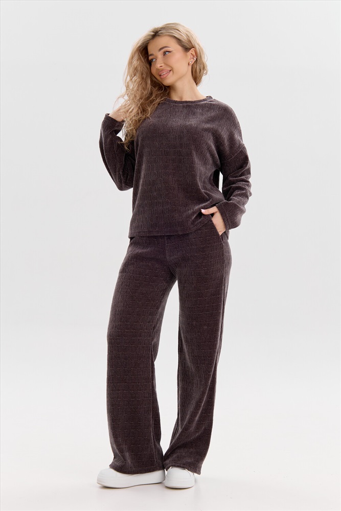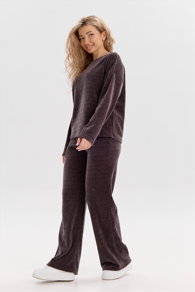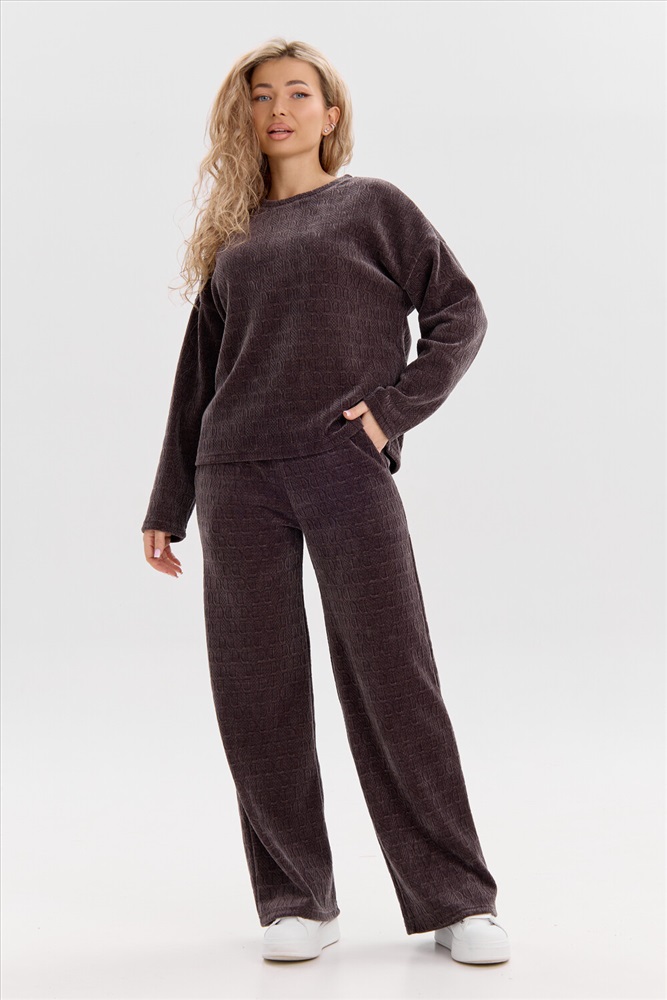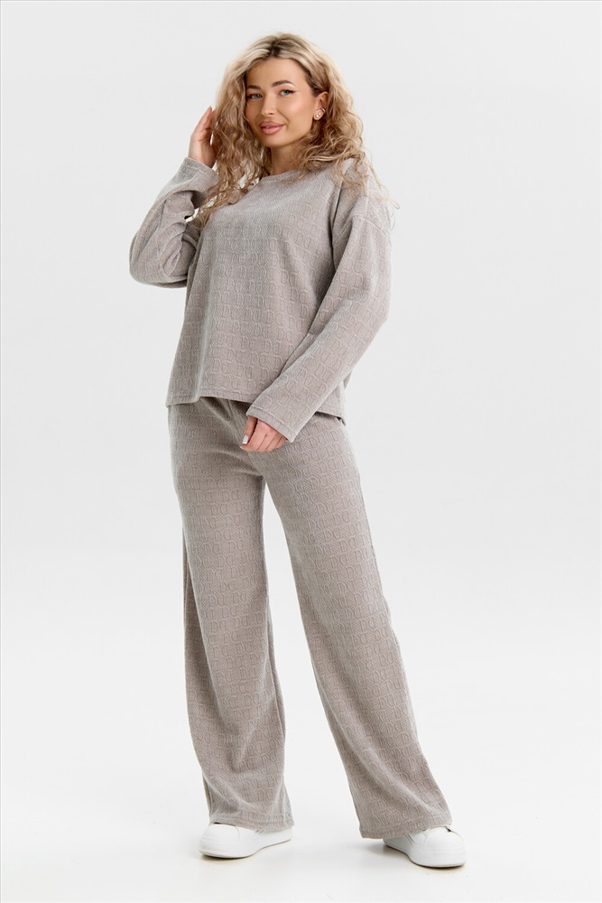 Застежка: без застежки Женский костюм выполнен из жаккарда высокого качества. Жаккард - высокотехнологичный материал, прошедшей особую обработку. Ткань отличается высокими теплозащитными свойствами, при этом является дышащей. По своим характеристикам она не уступает шерстяным полотнам. И даже в сыром состоянии удерживает тепло у тела. Материал прочный, эластичный, влагостойкий. Воздухопроницаемая гигроскопичная ткань создает для тела комфортный микроклимат. Изделия из жаккарда легкие, не мнутся, не деформируются, не вытягиваються.В такой одежде удобно и комфортно. Эластичность материала позволяет легко двигаться. Костюм состоит из лонгслива и брюк. Лонг в стиле OVERSIZE ( одежда свободного кроя ) - это свобода самовыражения, позволяющая чувствовать себя комфортно и стильно одновременно. Горловина свитшота выполнена с обтачкой. Линия плеча спущена, длинный рукав. Женские стильные брюки - трубы представлены с вместительными боковыми карманами. Пояс выполнен на специализированной круговой поясной машине, что делает швы ровными и качественными. А профессиональные закрепки на поясе, придают изделию законченный вид и качество. Свободный крой прекрасно будет смотреться на дамах с любыми формами. Костюм такого плана представлен в широкой размерной сетке, что позволяет выбрать его как девушке, так и женщине. Костюм модных расцветок, будет удачным выбором для поездок в отпуск, на пикник, для школы, для активного отдыха и прогулок по городу. Будет гармонично сочетаться как с кроссовками, так и с ботинками. Используя эту модель в качестве домашнего костюма, Вы поймёте, что это именно тот самый идеальный вариант, в котором будете себя чувствовать удобно, комфортно и современно. Костюм с брюками - это настоящая находка для тех, кто ценит свою индивидуальность! Уход: -температура воды не более 40С (лучше 30С); -допустима ручная и автоматическая стирка; -Одежду не выкручивают, а развешивают на плечики, давая воде стечь. -сушка в стиральной машине недопустима; Ориентируясь по таблице замеров, обратите внимание, что замеры длины рукава проводились от точки основания шеи.