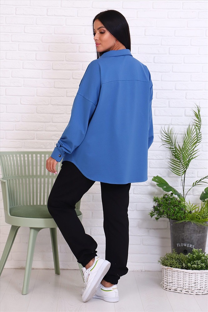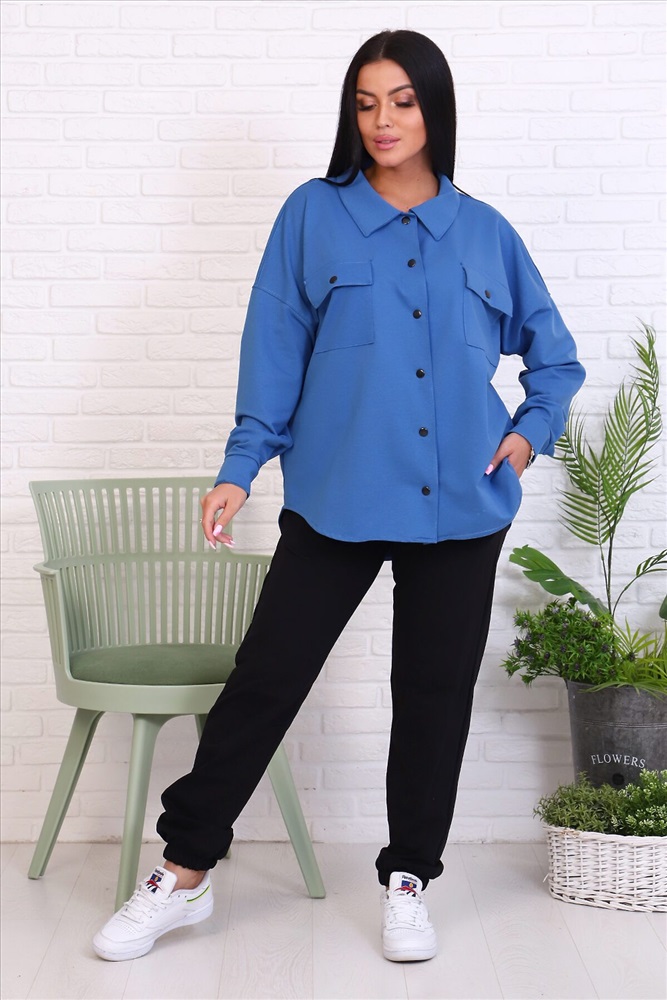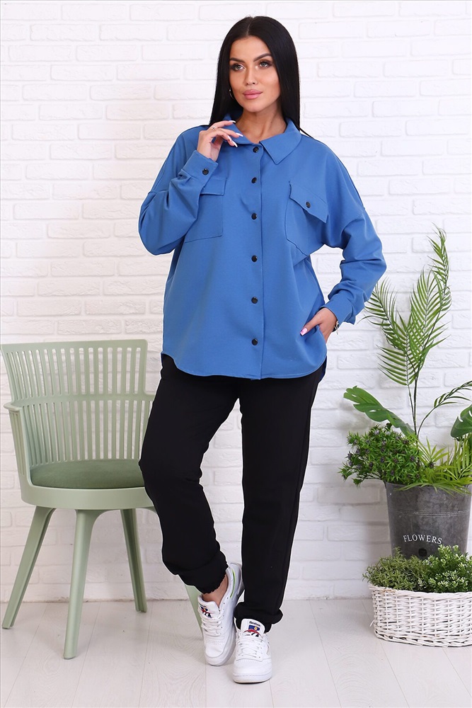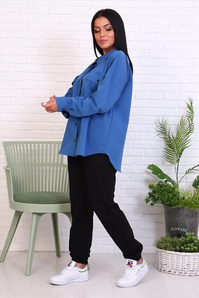 ID товара: 770471 Состав: 72% хлопок, 20% п/э, 8% лайкра Сезон: Весна/Лето Длина: Полная Фасон: Оверсайз Рукав: Длинный Вид застежки: Кнопки Крой брючин: Прямой Рисунок: Без рисунка Тип карманов: накладной Декоративные элементы: Клапаны, манжета Основная ткань: Хлопок | Футер с лайкрой 2-х нитка Стиль: Повседневный Страна бренда: Россия Страна производства: Россия Костюм женский из однотонного футера состоит из рубашки и брюк. Рубашка - оверсайз с отложным воротником, накладными карманами, рукав на манжете, застежка - на кнопки. Брюки внизу на резинке, с карманами в боковых швах. Комментарии к товару