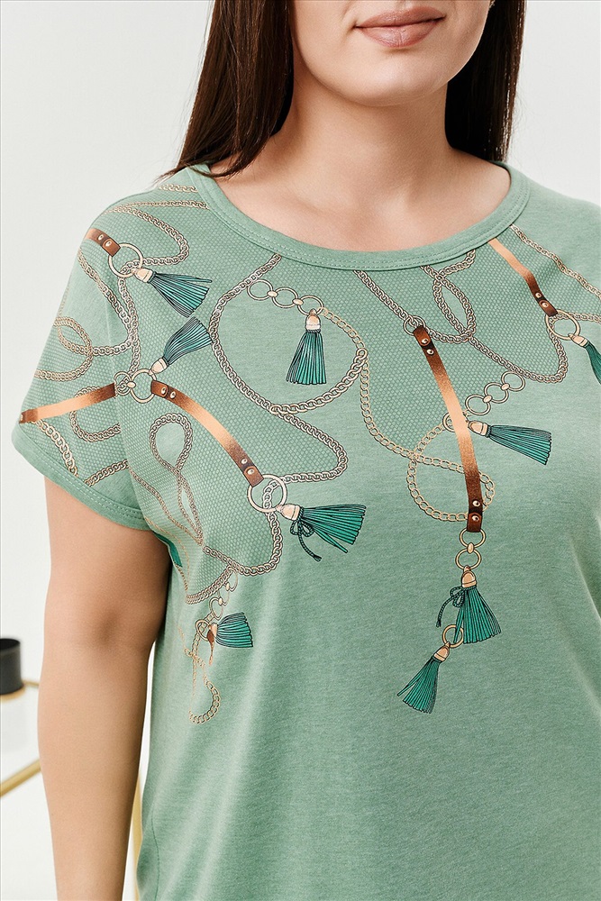 Производитель: НАТАЛИ ID товара: 821725 Состав: 50% Хлопок, 50% Полиэстер Сезон: Демисезон Длина: Средняя Фасон: Прямой Рукав: Короткие Крой брючин: Прямой Рисунок: цепи Тип карманов: С отрезным бочком Декоративные элементы: Принт Основная ткань: Хлопок | Кулирка Стиль: Повседневный Страна бренда: Россия Страна производства: Россия
