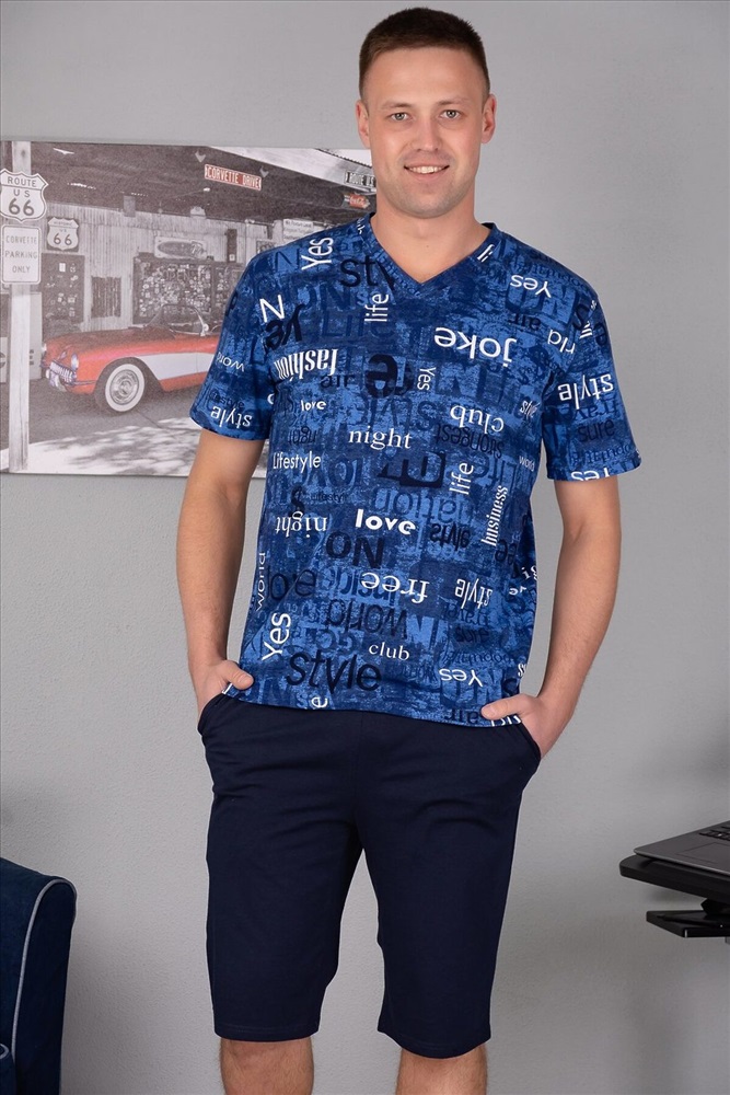ID товара: 306299 Состав: Хлопок 100% Сезон: Весна/Лето Длина: До колена Фасон: Прямой Рукав: Короткий Крой брючин: Зауженный Рисунок: Фантазийный Тип карманов: Втачные Основная ткань: Хлопок | Кулирка, кулирка реактив, Кулирка — это самое тонкое и гладкое трикотажное полотно, изготовленное из чистого хлопка. Полотно имеет характерную структуру- с лицевой стороны плоские «косички», с изнаночной – «кирпичная кладка». Особенности- гигроскопична, воздухопроницаема, при стирке, сушке и глажке не садится, хорошо держит форму, не образует складки. Стиль: Повседневный Страна бренда: Россия Страна производства: Россия Удобный мужской костюм с шортами из натуральной хлопковой ткани. Приятен к телу и не стесняет движений. Футболка прямого кроя с V-образным вырезом. Шорты средней длинны с боковыми карманами. Пояс изготовлен на поясной машине. Комментарии к товару