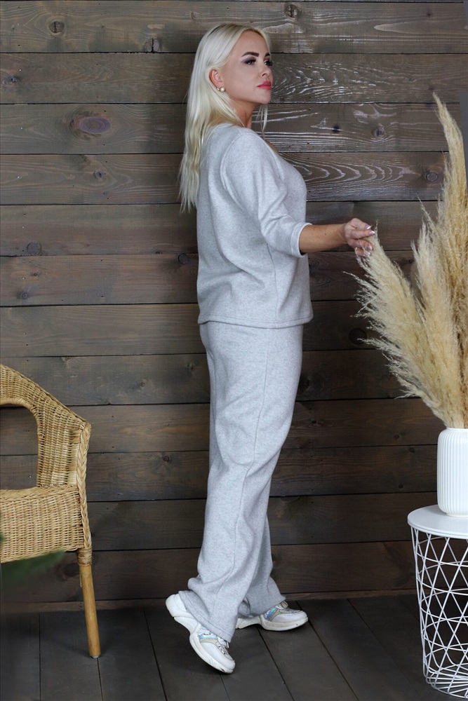 Костюм из мягкой смесовой ангоры состоит из джемпера с округлым вырезом горловины, рукав удобной длины 3/4 и свободных прямых брюк на резинке, которые очень комфортно садятся по фигуре. Стирка при 30 градусах.