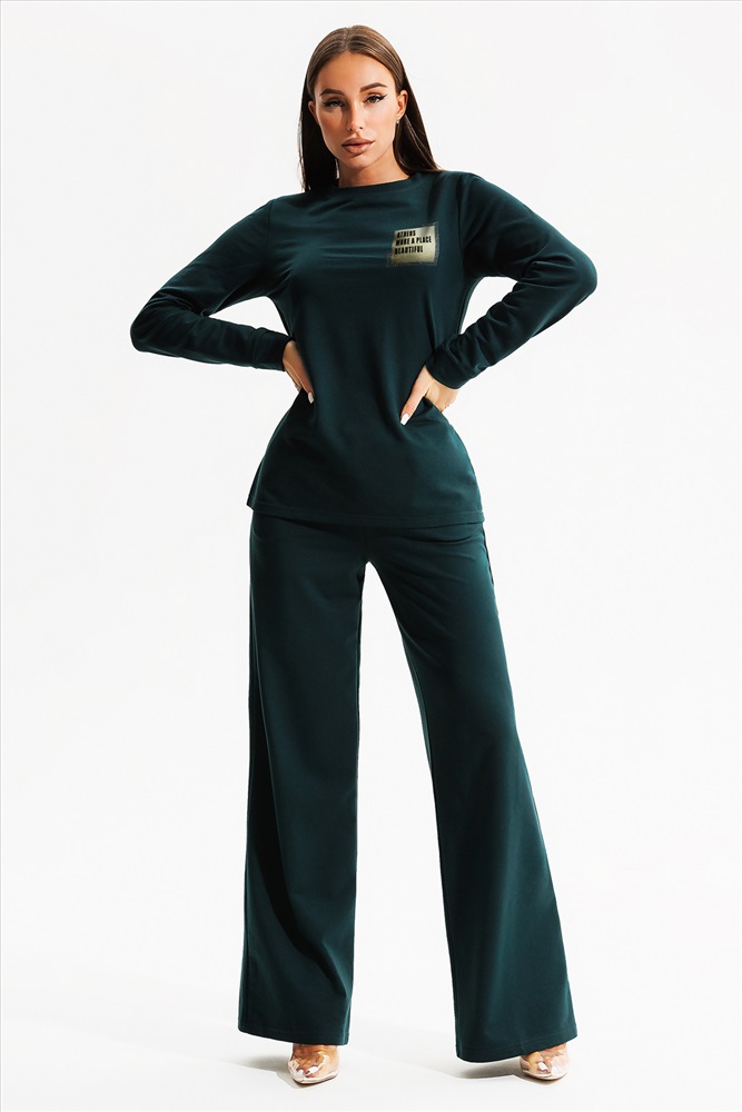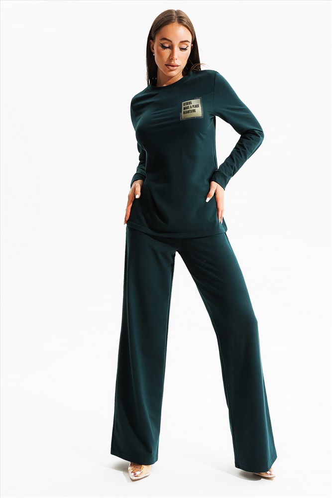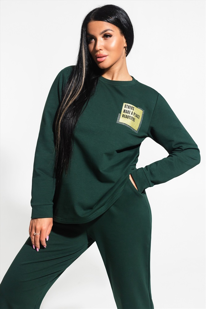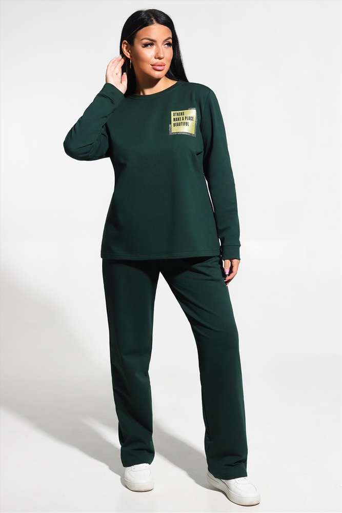 Состав: 72% х/б, 20% пэ, 8% лайкра Модель: Костюм 45656 Тип товара: костюм с брюками Материал: футер 2-х нитка | футер 2-х нитка Бренд: Натали Суслова Карман: боковые Особенности: на резинке Отделка: с карманами | с печатью Посадка: средняя посадка Рисунок: надпись Рукав: длинный рукав Сезонность: лето | осень | весна | зима Силуэт: прямой | свободный Стиль: повседневный Воротник: без воротника Застежка: без застежки Костюм женский из футера 2 нитки, состоит из туники и брюк. Туника полуприлегающего силуэта, длиной до бедер, рукав втачной, длинный, с манжетой по низу. Горловина округлой формы с обтачкой. По переду нанесен дизайнерский принт. Брюки прямые, свободные, длинные. Притачной пояс на резинке, внутренние боковые карманы с наклонным входом. Таблица размеров и весатуника