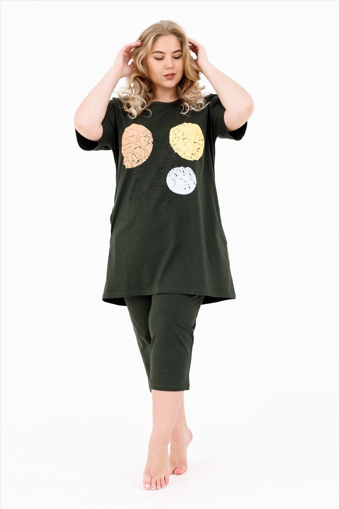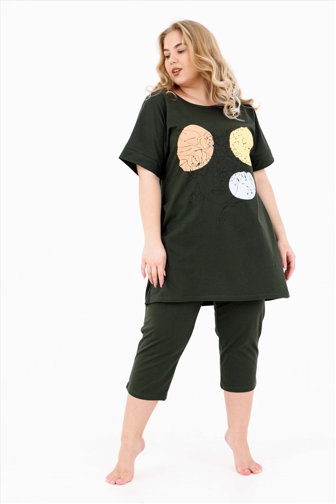 Состав: 100% Хлопок Модель: Костюм 46524 Тип товара: костюм с бриджами Материал: кулирка | кулирка Бренд: Modalina Карман: боковые Назначение: для дачи | для дома НДС: 5% Особенности: на резинке Отделка: с карманами | с печатью Посадка: высокая посадка Рисунок: крупный принт | разное | узоры Рукав: короткий рукав Сезонность: лето | осень | весна | зима Силуэт: полуприлегающий | трапеция Стиль: домашний | повседневный Воротник: без воротника Застежка: без застежки Хлопковый костюм с бриджами от бренда MODALINA состоит из: туники полуприлегающего силуэта с коротким рукавом и прорезными карманами, длина футболки - ниже бедер, горловина округлой формы, с ненавязчивым принтом. Бриджи классической длины с прорезными карманами, с широкой резинкой, которая не передавливает животик. Таблица размеров и весафутболка