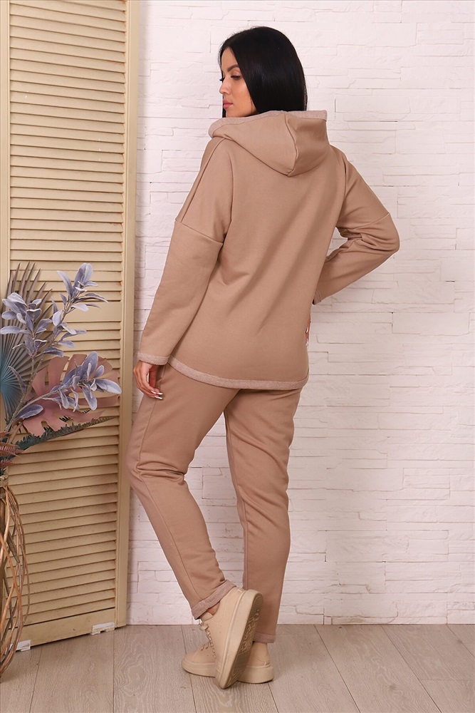 ID товара: 714500 Состав: 65% Хлопок, 35% Полиэстер Сезон: Осень/Зима Длина: Средняя Фасон: Прямой Рукав: Длинные Вид застежки: Без застежки Крой брючин: Зауженный Рисунок: Звезды Тип карманов: Втачные Декоративные элементы: Пайетки Основная ткань: Хлопок | Футер 3-х нитка Стиль: Спортивный Страна бренда: Россия Страна производства: Россия Костюм женский состоит из толстовки и брюк. Брюки прямые с карманами. Толстовка с капюшоном, рукав спущенный, низ изделия полукруглый, перед короче спинки, на полочке печать. Весь костюм подогнут наизнанку декоративной обработкой Комментарии к товару