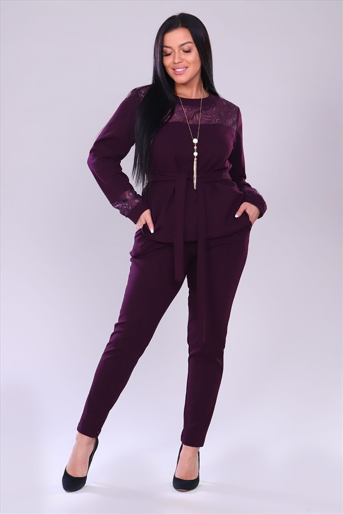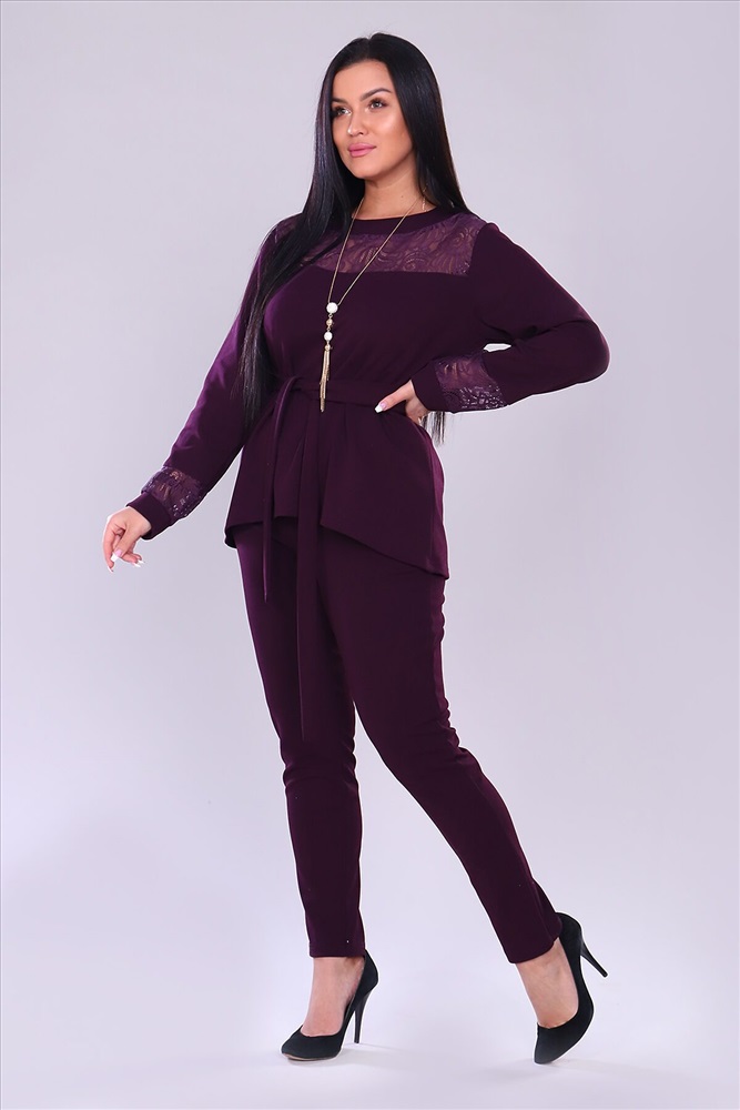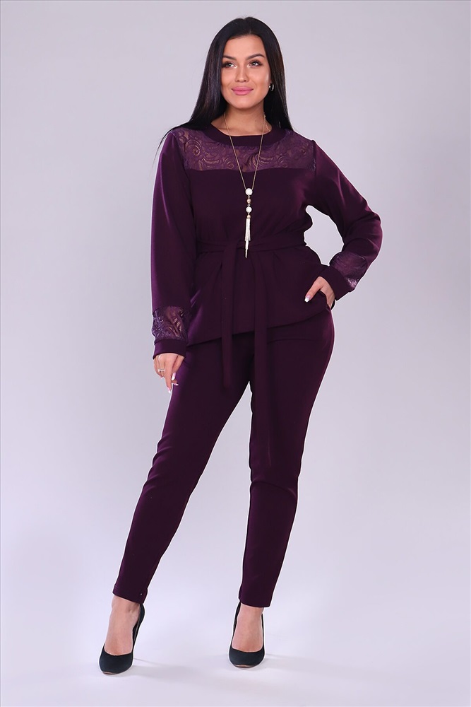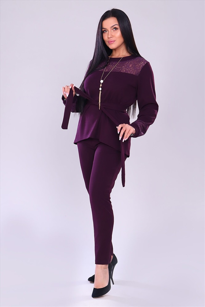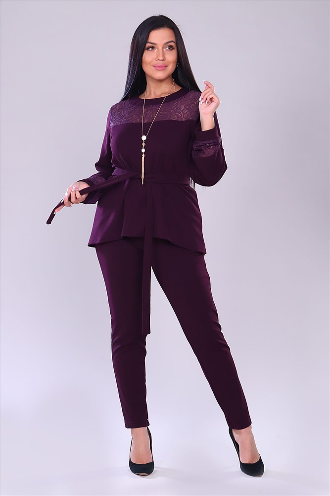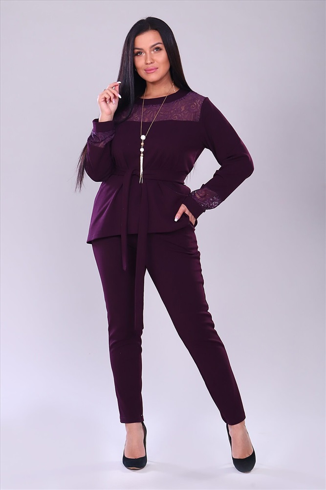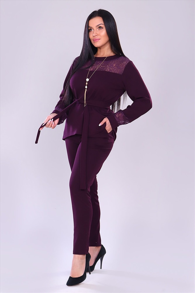 ID товара: 743287 Состав: 95% Полиэстер, 5% Лайкра Сезон: Демисезон Длина: Полная Фасон: Полуприлегающий Рукав: Длинные Вид застежки: Без застежки Крой брючин: Зауженный Тип карманов: Прорезные Декоративные элементы: Кружево Основная ткань: Полиэстер | Креп Стиль: Нарядный Страна бренда: Россия Страна производства: Россия Костюм брючный. Брюки с карманами на притачном поясе. Кофта свободная, к низу расклешеная, перед чуть короче, чем задняя половина. Кокетка из кружева, рукав длинный на манжете, с элементами кружева. Комментарии к товару