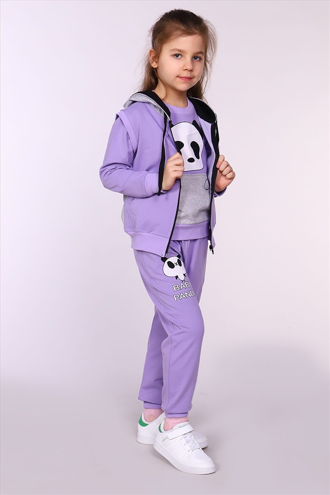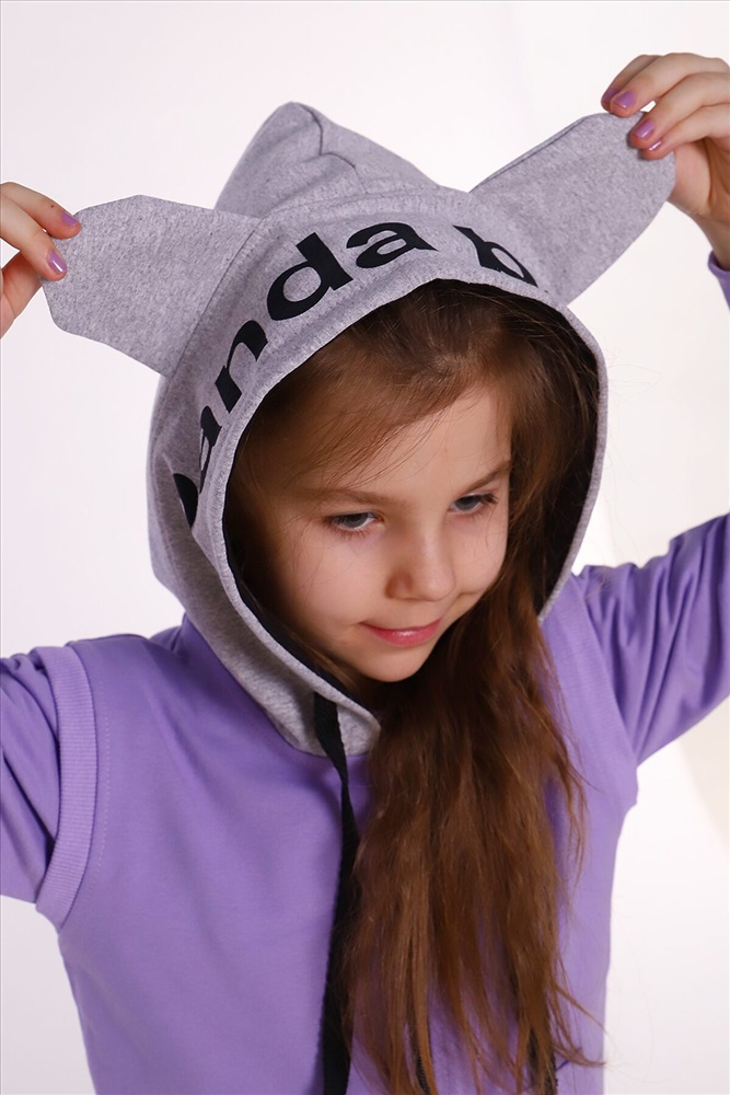 Костюм тройка из 2-х нитки. Костюм состоит из кофты, брюк и жилета. Оригинальный дизайн, эластичная ткань, свободный крой. На толстовке печать на полочке и кармане, на жилете печать на спине. Капюшон с ушками