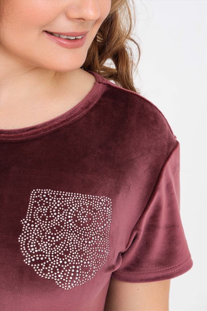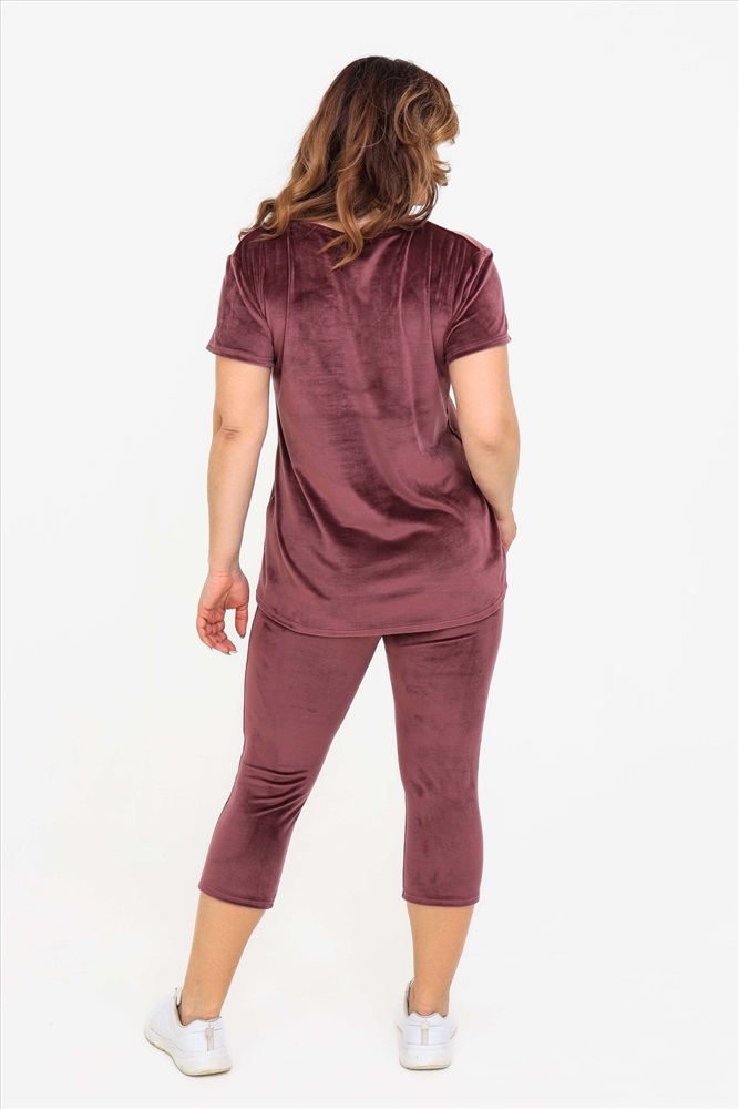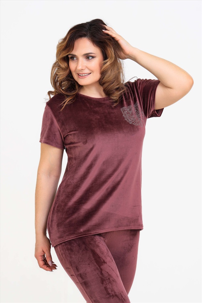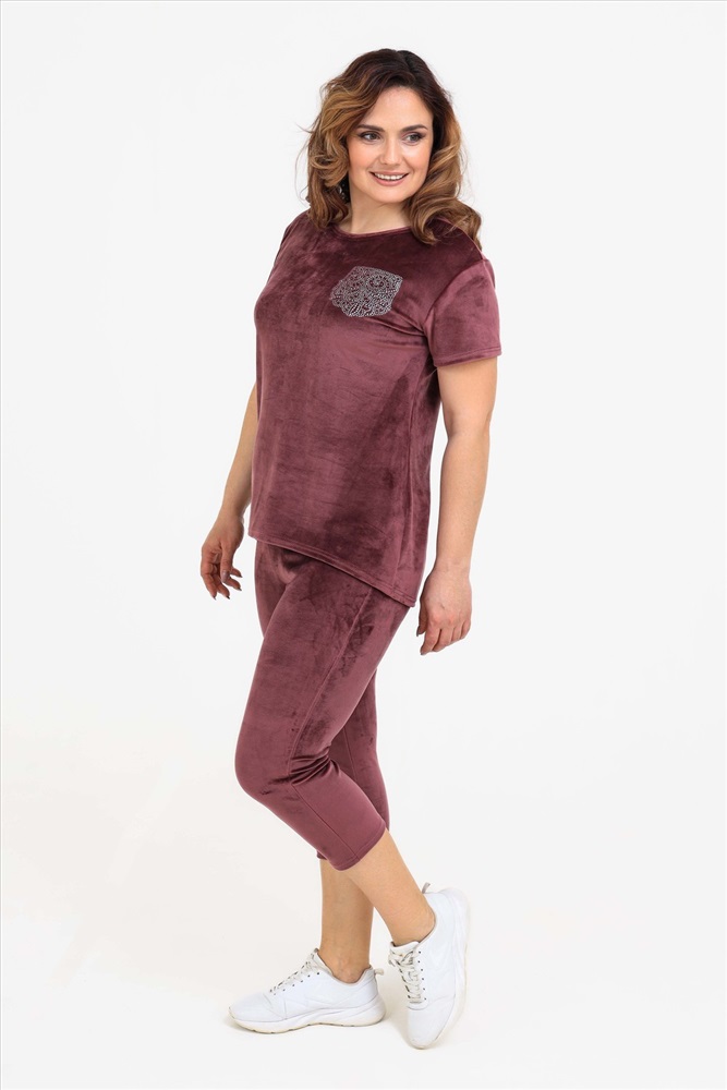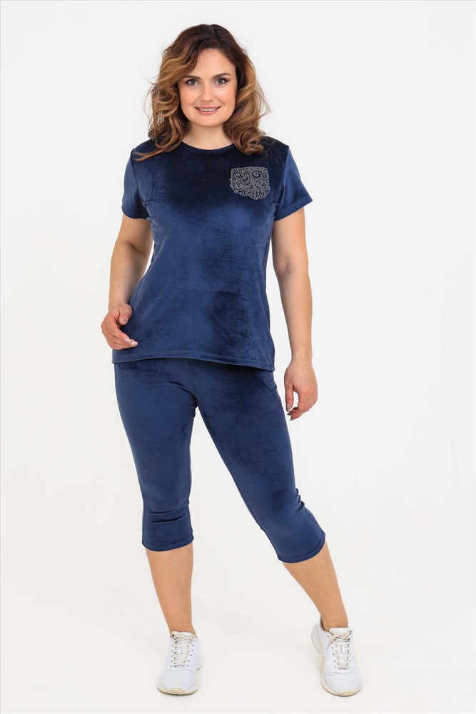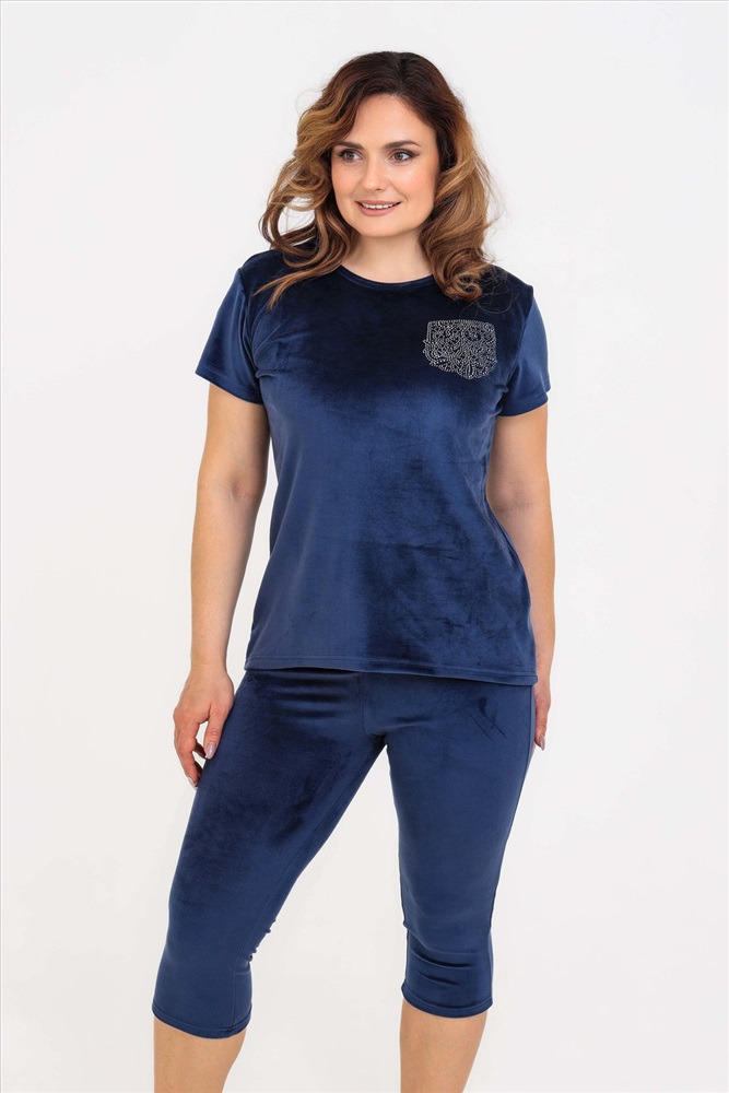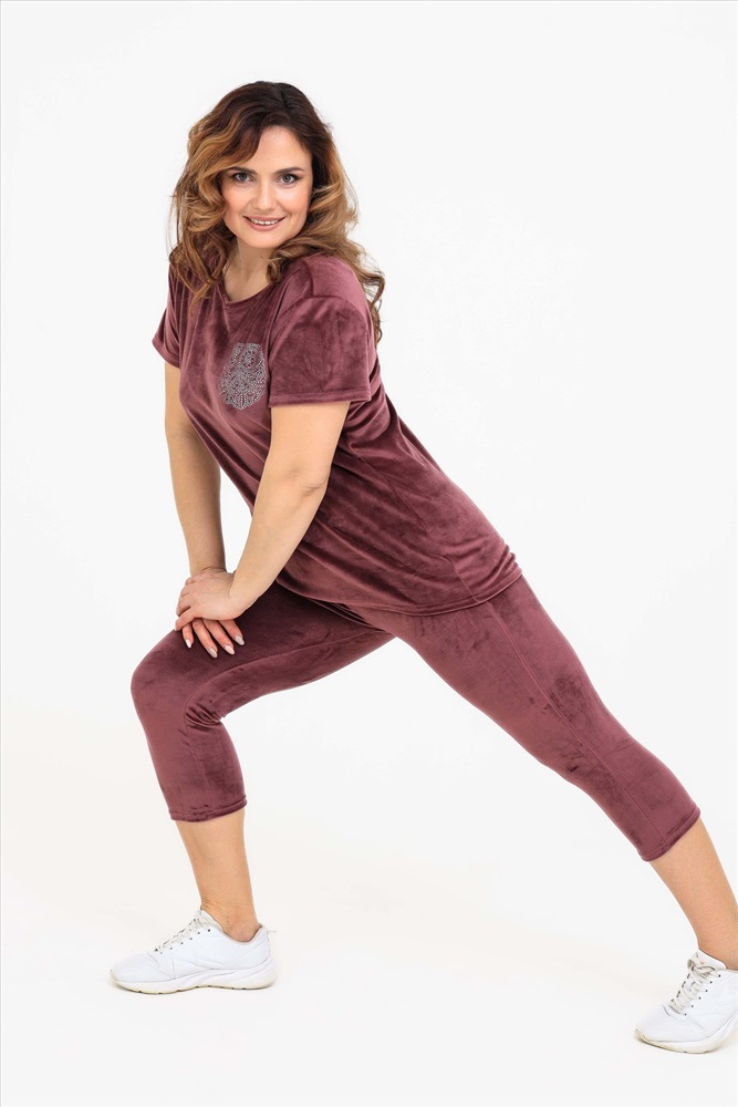 Состав: 97% п/э; 3% спандекс Модель: Костюм 50543 Тип товара: костюм с бриджами Материал: велюр | велюр Бренд: Натали Суслова Карман: без карманов Назначение: для дома НДС: 5% Особенности: на резинке Отделка: со стразами Посадка: средняя посадка Рейтинг: Рейтинг 4 и выше Рисунок: однотонные Рукав: короткий рукав Сезонность: лето | осень | весна | зима Силуэт: прилегающий Стиль: домашний Воротник: без воротника Застежка: без застежки Костюм женский из велюра. В комплект входят:- футболка с коротким рукавом с округлым вырезом горловины и леггинсы. Мягкий трикотажный комплект для женщин Российского производства. Стильный костюм из стрейч - велюра для женщин представлен в широкой размерной сетке: от маленького 42 размера до 52 размера. Удобный домашний велюровый комплект не сковывает движений, что делает его универсальной одеждой, которая подойдет на любую фигуру как для худеньких, стройных, так и для пышных девушек и женщин. Костюм двойка женский подходит на любой рост: для высоких и для невысоких. Однотонный костюм с шортами выполнен в спокойных и практичных темных тонах. Бархатный комплект из трикотажной ткани не сковывает движения, скрывает недостатки и подчеркивает достоинства фигуры. Костюм из велюра не мнется, не дает усадку после стирок, не теряет цвет, сохраняет форму и внешний вид. Молодежный комплект подходит для девочек, подростков, молодых женщин, а также для женщин любого возраста, желающих модно выглядеть в домашней обстановке. Легкий летний спортивный костюм позволяет коже дышать за счет хорошей воздухопроницаемости, а гипоаллергенная ткань высокого качества долго не потеряет своих характеристик. Леггинсы и футболку по Вашему желанию по отдельности можно комбинировать с другими предметами одежды. Костюм отлично зарекомендовал себя в эксплуатации, он будет долго радовать Вас при условии соблюдения рекомендаций по уходу за изделием. Размер на модели 48, параметры 105-86-98/169. Таблица размеров и весатуника