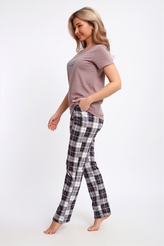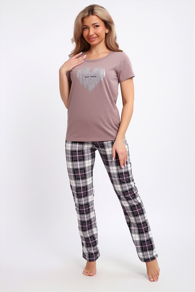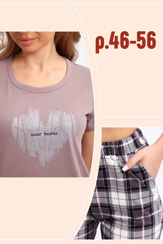 Состав: 100% хлопок Модель: Костюм 51205 Тип товара: костюм с брюками Материал: кулирка | кулирка Бренд: Натали Суслова Карман: боковые | прорезные Назначение: для дома НДС: Без НДС Особенности: на резинке Отделка: с карманами Посадка: средняя посадка Рисунок: надпись | сердечки Рукав: короткий рукав Сезонность: лето | осень | весна | зима Силуэт: прямой | свободный Стиль: домашний Воротник: без воротника Застежка: без застежки Комплект футболка + брюки из хлопкового полотна кулирка. Футболка цвета кофе с молоком, на полочке серебристый принт в виде стилизованного сердечка, брюки в клетку, с карманами, пояс на резинке. Таблица размеров и весафутболка
