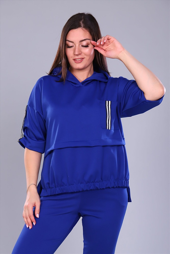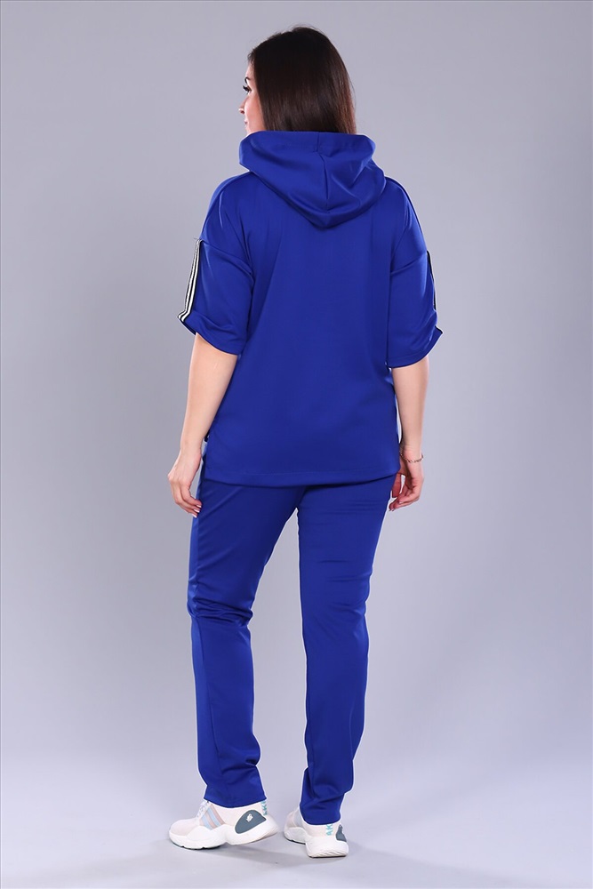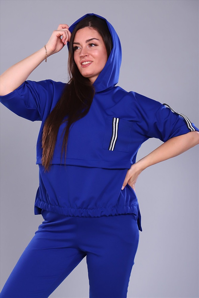ID товара: 811547 Состав: 95% полиэстер, 5% спандекс Сезон: Демисезон Длина: Полная Фасон: Оверсайз Рукав: Короткий Крой брючин: Прямой Тип карманов: накладной Декоративные элементы: Паты Основная ткань: Полиэстер | Водолаз Стиль: Спортивный Страна бренда: Россия Страна производства: Россия Костюм женский с брюками. Брюки прямые, свободные; пояс на резинке с внутренними карманами. Туника с капюшоном, спущенный рукав 3/4 на патах, длина рукава от шва. На передней полочке по линии талии кокетка, сбоку накладной карман, низ туники спереди на резинке, по бокам разрезы, задняя полочка прямая. Удобный и практичный. Комментарии к товару