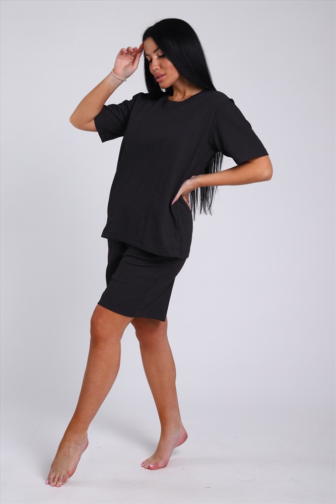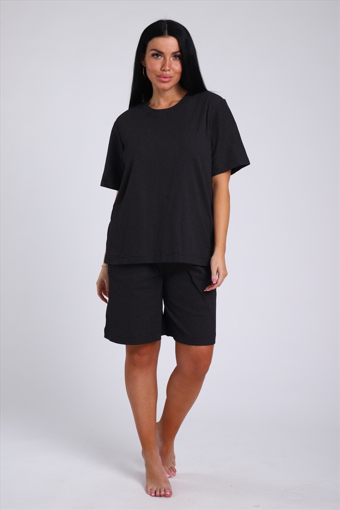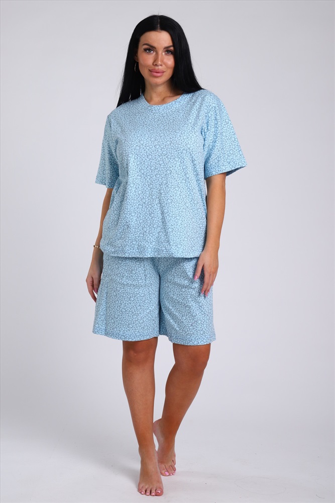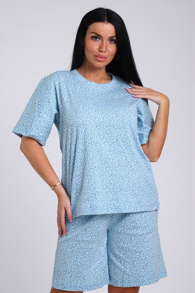 Состав: 85% хлопок; 15% лайкра Модель: Костюм 52317 Тип товара: костюм с шортами Материал: футер с лайкрой 2-х нитка | футер с лайкрой 2-х нитка Бренд: Натали Суслова Карман: боковые Назначение: для дачи | для дома НДС: 5% Особенности: на резинке Отделка: с карманами Посадка: высокая посадка Рисунок: горошек | крапинка | разное | сердечки Рукав: короткий рукав Сезонность: лето | осень | весна | зима Силуэт: свободный Стиль: домашний Воротник: без воротника Застежка: без застежки Женский костюм с удлиненными шортами - идеальный выбор для тех, кто ценит комфорт и стиль. Домашний комплект состоит из базовой oversize футболки и широких шорт с карманами. Изготовлен из мягкого футера двунитки без начеса, который обеспечивает отличную воздухопроницаемость и комфорт в жаркую погоду. Хлопок в составе ткани гарантирует ее прочность и долговечность, а лайкра обеспечивает эластичность и удобство при движении. Большие размеры от 46 до 56 позволяют выбрать идеальный вариант для любого типа фигуры. Благодаря широкой резинке оверсайз шорт и свободному крою футболки этот комплект домашней одежды может стать прекрасным выбором для беременных женщин, так как не сковывает движения, а мягкий трикотаж не вызывает дискомфорта. Летний дачный комплект двойка из футболки и шорт oversize - идеальный вариант для прогулок, спорта и отдыха. Спортивный костюм также подойдет для дома, сна и путешествий. Повседневный домашний костюм с ярким принтом в стиле спорт шик станет универсальным подарком на любой праздник маме, бабушке или девушке. Таблица размеров и весафутболка