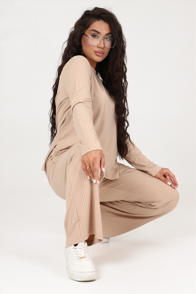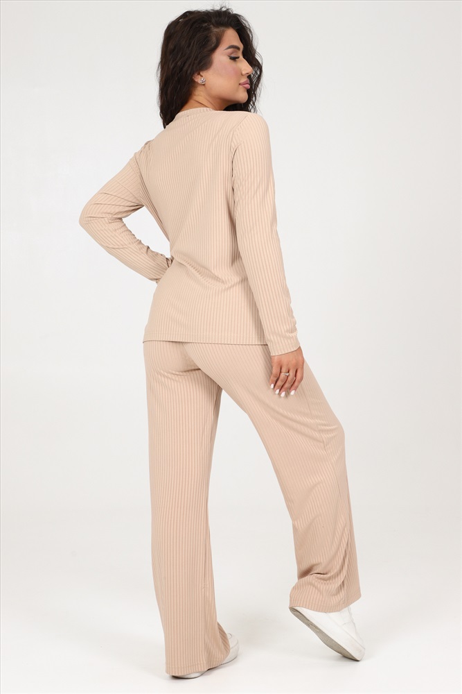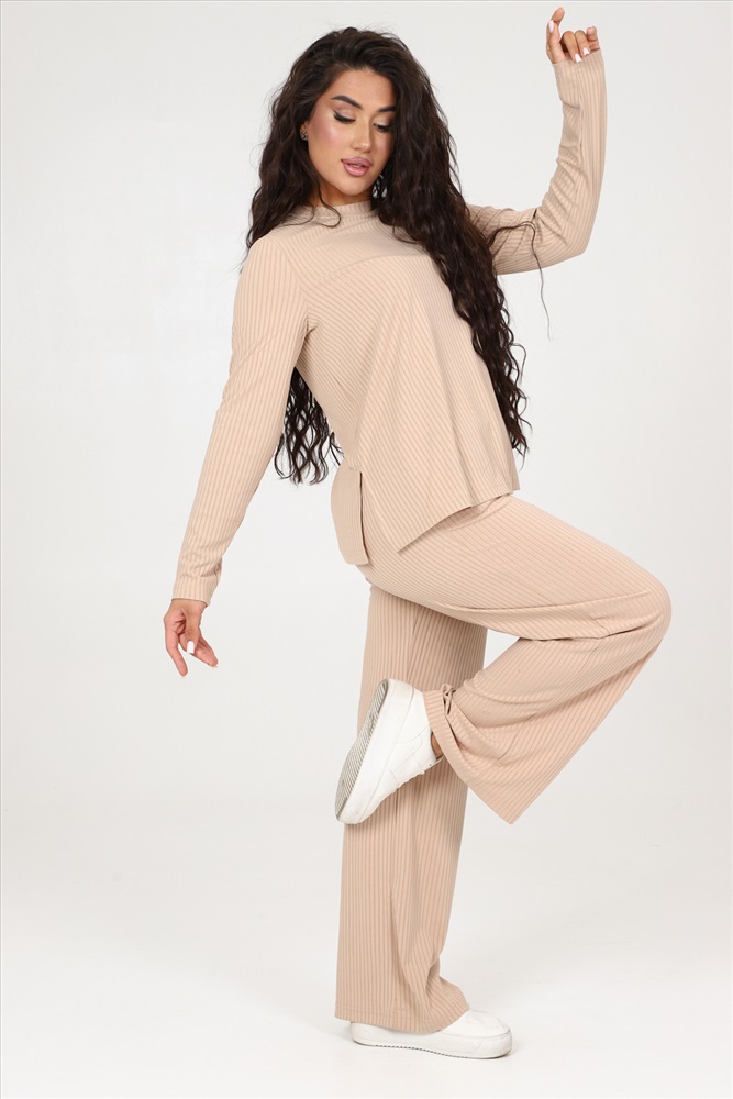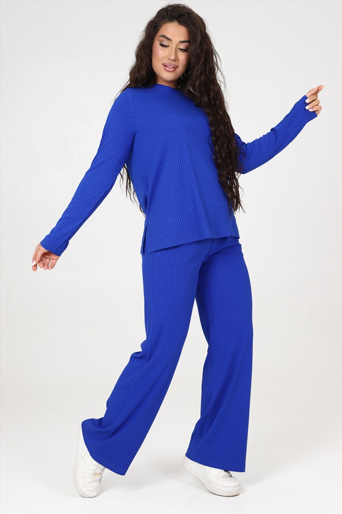 Застежка: без застежки Стильный женский трикотажный костюм из ткани лапши. Комплект состоит из кофты с длинным рукавом и разрезами снизу по бокам и брюк широкого кроя с поясом на резинке и карманами по бокам. Модель подойдет для вечернего и повседневного образа, отлично сочетается как с кроссовками, так и с туфлями. Костюм отлично подходит для прогулки, выезда на природу или похода в ресторан. Удобный свободный вверх отличный вариант на лето, приятные к телу штаты удобны и практичны.