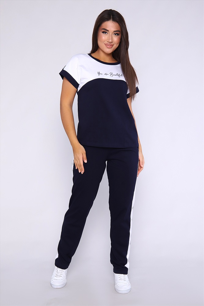 Состав: 100% хлопок Модель: Костюм 55070 Тип товара: костюм с брюками Материал: кулирка | кулирка Бренд: Натали Суслова Карман: боковые НДС: 5% Особенности: на резинке Отделка: с карманами | с лампасами | с манжетами | с печатью Посадка: высокая посадка Рисунок: колорблок | надпись Рукав: короткий рукав Сезонность: лето | осень | весна | зима Силуэт: прямой Стиль: повседневный Воротник: без воротника Застежка: без застежки Женский костюм, футболка с брюками, выполнен из качественного полотна (100% хлопок). Брюки прямые с лампасами, есть карманы, на поясе. Футболка с округлой горловиной, обработанной кантом, спущенный рукав. Таблица размеров и весафутболка