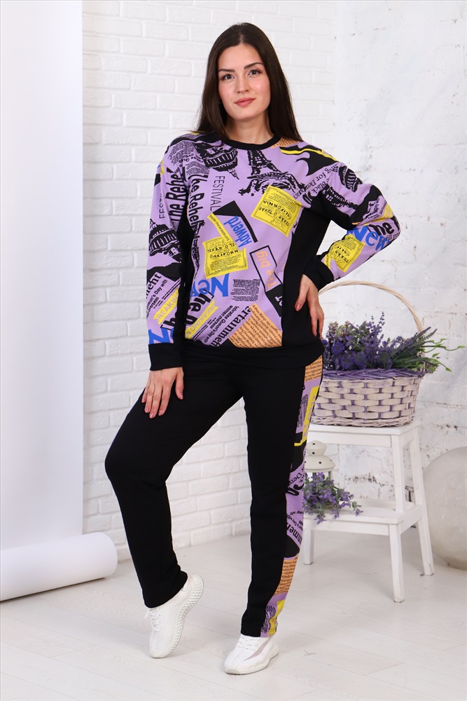 Застежка: без застежки Осенний костюм со спущенной проймой. Костюм состоит из толстовки и брюк. Данная модель сделана из футера 2-х нитки - 73% хлопок, 25% полиэстер, 2% лайкра, плотность 220 гр. Уютный и комфортный костюм подойдет всем!